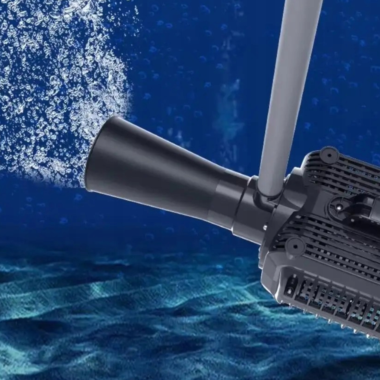 Устройство предназначено для работы под водой, что позволяет осуществлять прямую подачу кислорода в более глубокие слои резервуара. Такая конструкция облегчает установку и эксплуатацию насоса.