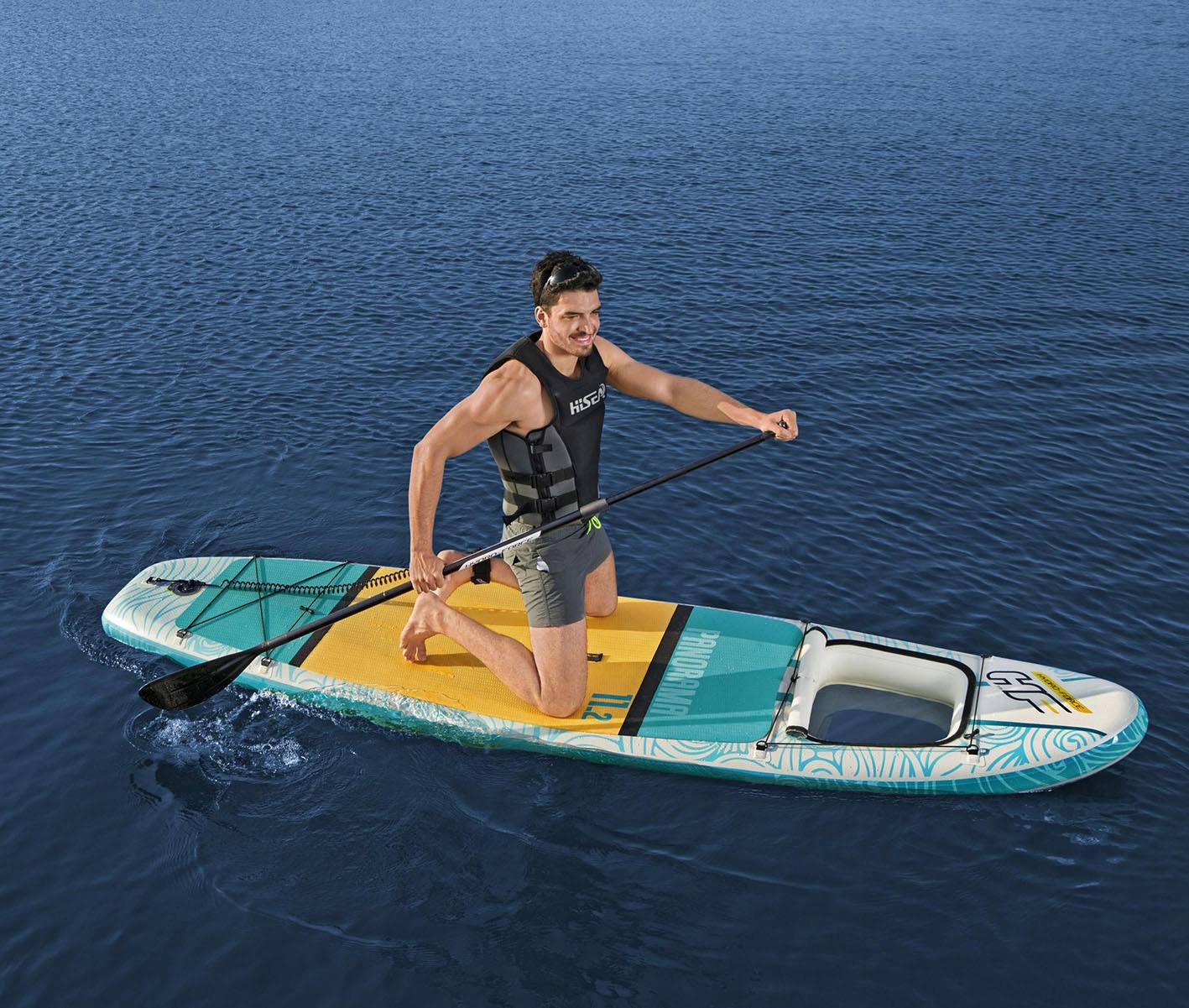 Набор Sup Hydro-Force ™ Panorama ™ готов к действию! Благодаря встроенному окну, эта доска предоставляет уникальный опыт на воде. Вы можете посмотреть в воду и посмотреть на плавучую рыбу и других водных животных! Если вы хотите запечатать окно, чтобы блокировать проникновение воды во время более длинных поездок, прикрепленная крышка легко и безопасно закреплена на месте. Эта доска классифицирована как тур SU, благодаря которой лучше всего подходит для более длительного плавания на плоской воде.