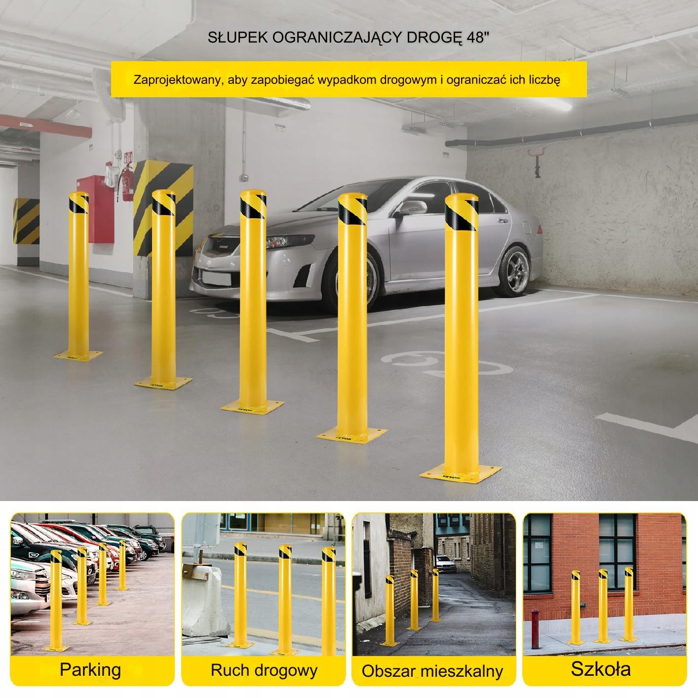Słupek parkingowy ostrzegawczy drogowy metalowy odbojnica 122x11,4 cm