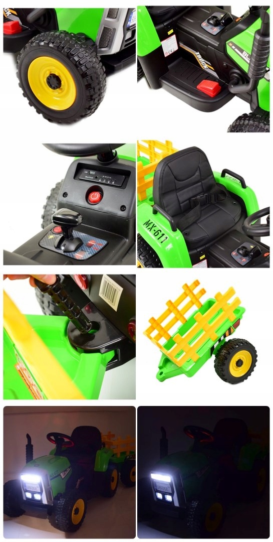 Панель со звуками, входом в MP3 и USB и освещение транспортных средств. Освещение - это новинка в батарейных тракторах.