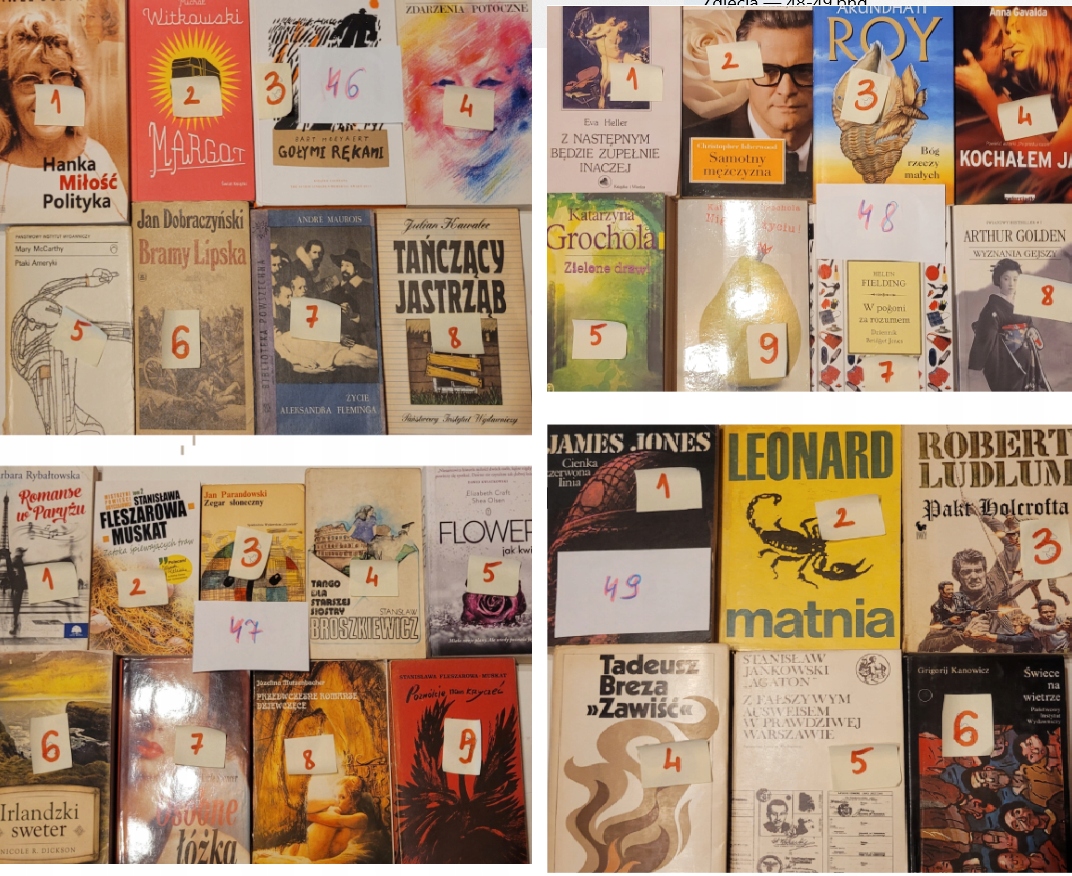 На этом аукционе мы предложили на выбор покупателя более 300 книг: детские и юношеские, исторические, триллеры и мелодрамы, триллеры, романы, интервью. , психологические и религиозные книги и очень-очень много чтения. Здесь каждый найдет книги для себя. Из этих 300 книг вы можете выбрать 25 по общей цене 45 злотых. Создайте свой набор. Покупайте дешево и с выбором: вы платите 1,80 злотых за книгу. Это дешевый и удобный способ обеспечить ребенка чтением на весь год или на всю начальную или среднюю школу, пополнить коллекцию книг о событиях Второй мировой войны или современной литературы. Приглашаем вас выбрать и купить.