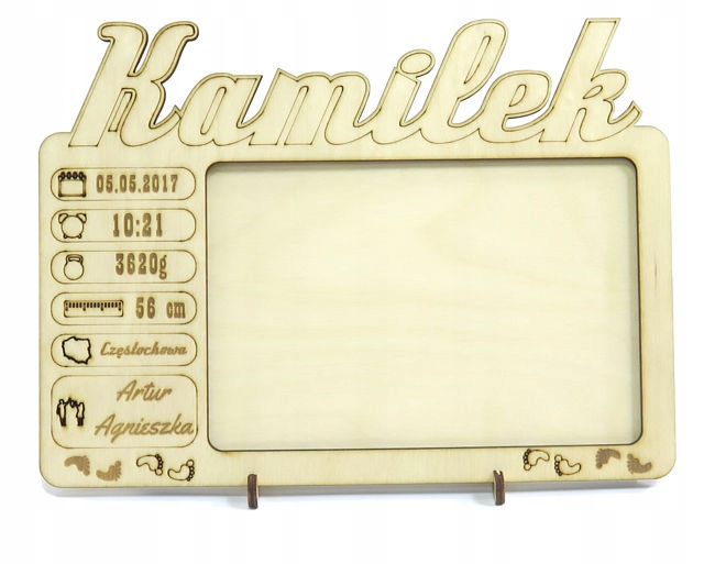 Рамку с внешними размерами: ширина: 22см, высота: 15,7 - 16,3см - в зависимости от присвоенного имени
