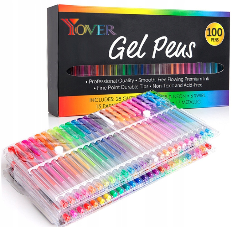 СУПЕР НАБІР із 100 шт різнокольорових гелевих ручок.
