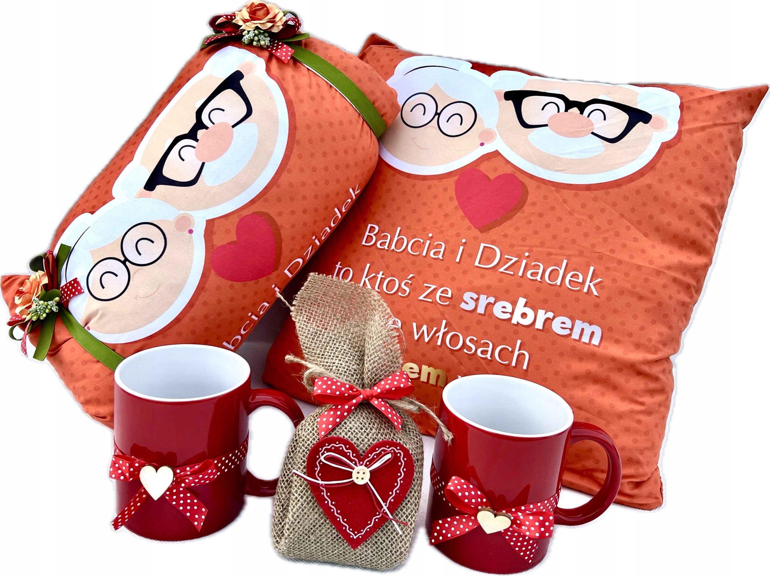 SUPER Prezent dla Babci i Dziadka na Dzień Zestaw Prezentowy Kubki Poduszka