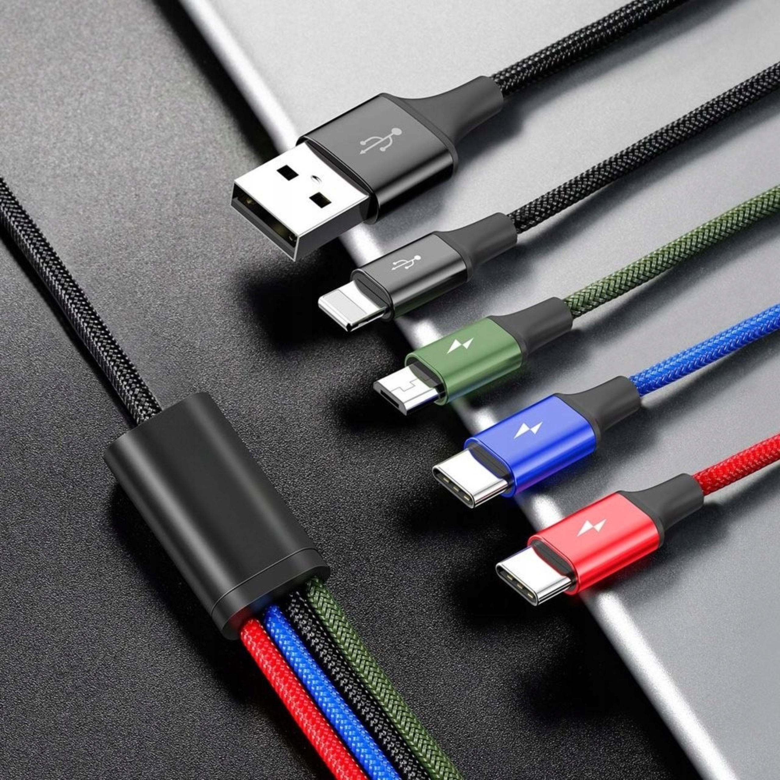 - 1x USB 4IN1 Кабель (USB-C + Micro USB + Lightning + USB)