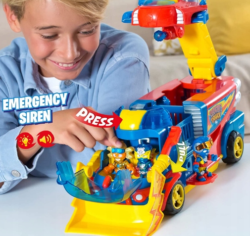 ОТЛИЧНЫЙ ГЕЙМПЛЕЙ! – 8+ действий: ловите плохих парней передней лопатой, наблюдайте за дверями эвакуации из тюрьмы, активируйте аварийную сирену, стреляйте в воду из пушки, чтобы тушить пожары, отделяйте корабль и летите!, используйте лестницу, чтобы добраться до самых высоких мест , зарядите свои супервещи с помощью регенератора Kazoom, а когда закончите, садитесь в грузовик и отвезите их на следующую спасательную миссию.
