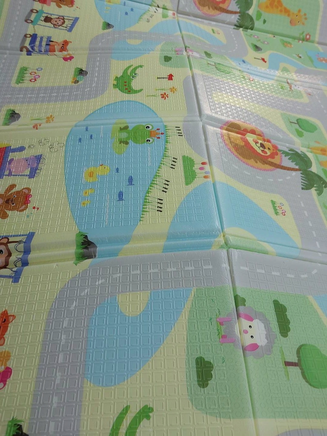 коврик большой и является идеальной игровой площадкой для детей, поэтому они могут играть и ползать на четвереньках без колена.