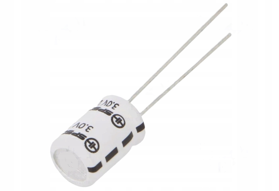 Производитель = SPSCAP Шаг выводов = 3,5 мм Рабочая температура = -40...65°C Размеры корпуса = ?8x12 мм Тип конденсатора = суперконденсатор Емкость = 1 Ф Рабочее напряжение = 3 В постоянного тока Максимальный импульсный ток = 0,83 А Ток утечки = 5 мкА При работе ток = 0,26А