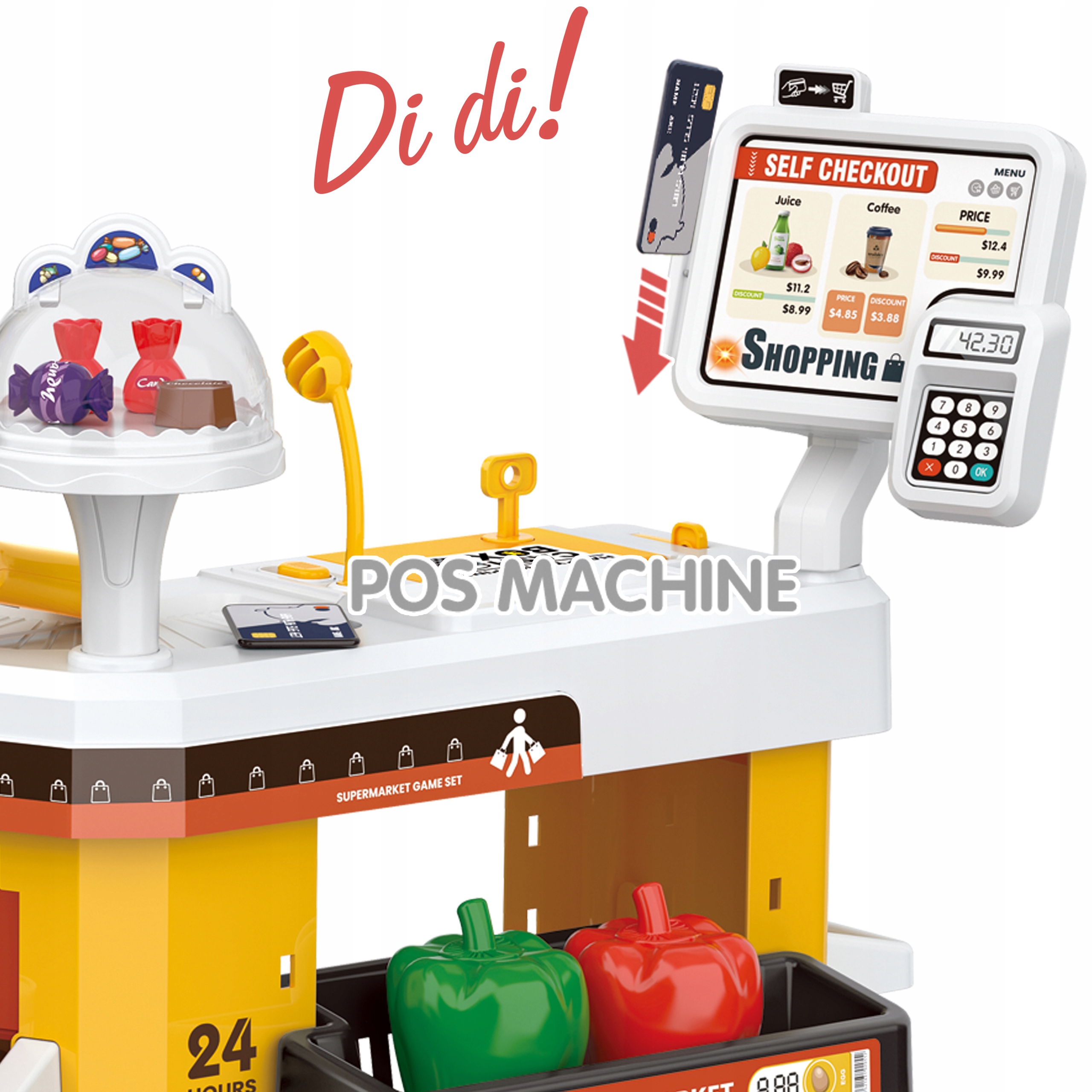 Супермаркет оснащен вращающимися деньгами , который добавляет реализм для игры. После перетаскивания платежной карты терминал издает смешные звуки, , что делает покупки еще более захватывающими! Дети также могут использовать сканер, который издает звуки и вспышки светом, когда они сканируют покупки.