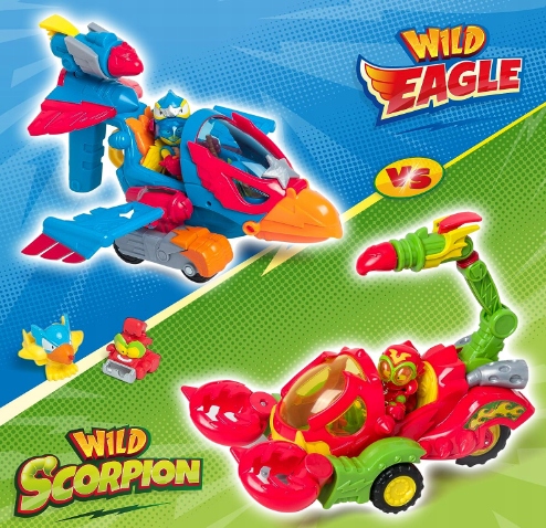 С помощью мощных атак животных и опытных пилотов начинается самая дикая дуэль! Откройте для себя всю мощь Скорпиона с эксклюзивным Wild Kid и SuperThing в кабине. У Дикого Скорпиона есть когти для ловли соперников, которые вращаются при движении. Кроме того, он может стрелять по героям своим мощным жалом!