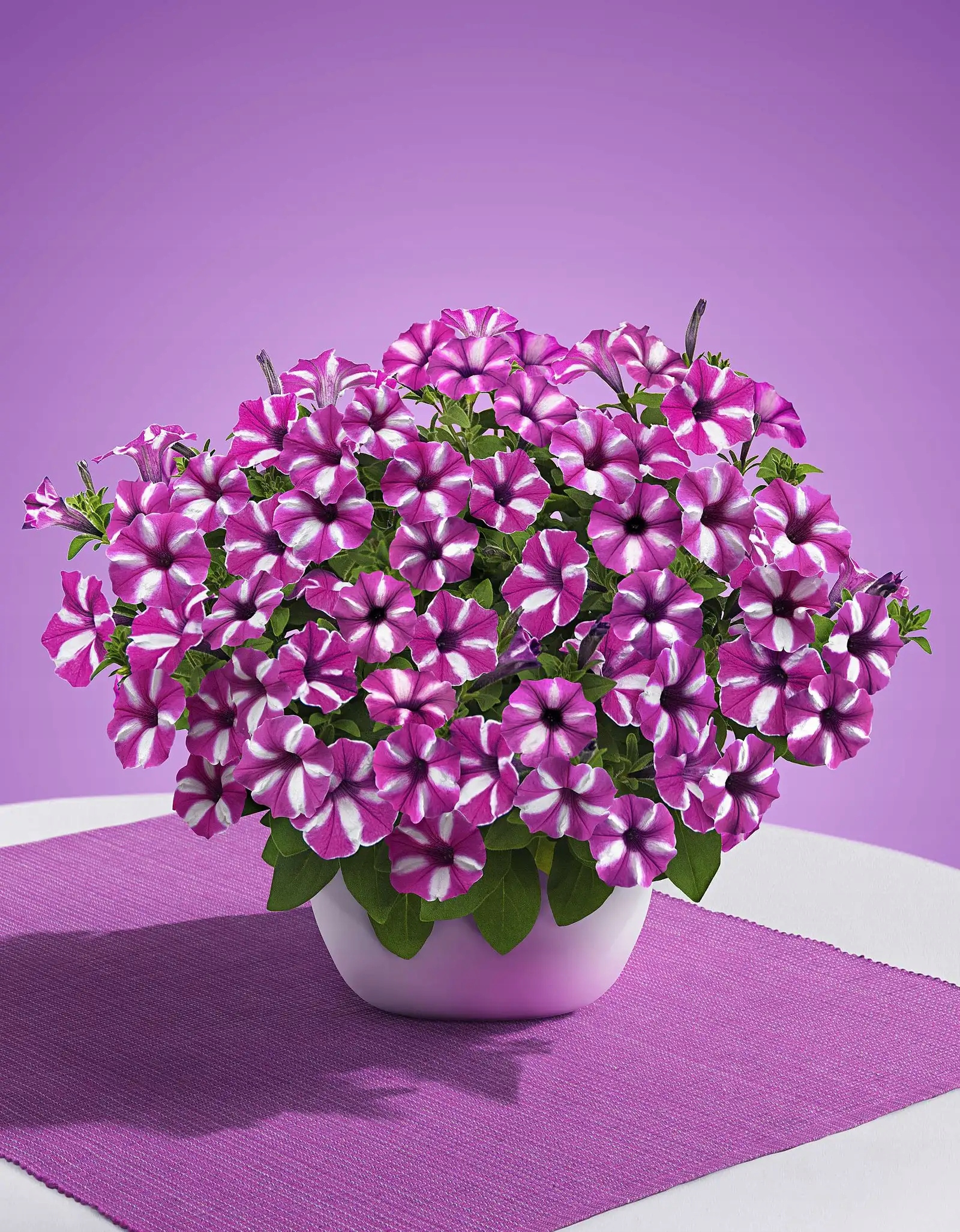 Супертуния 'Vista' отличается красивой, свисающей формой, ранним, очень обильным цветением, сильным ростом и большей устойчивостью к неблагоприятным погодным условиям. Сорта из этой серии очень хорошо переносят жару, а их цветки чрезвычайно долговечны и очень быстро восстанавливаются даже после обильных дождей. Это стерильные растения, не завязывающие семян, поэтому не требуют регулярной очистки. Отцветшие цветки засыхают и опадают самостоятельно, что делает выращивание менее трудоемким.