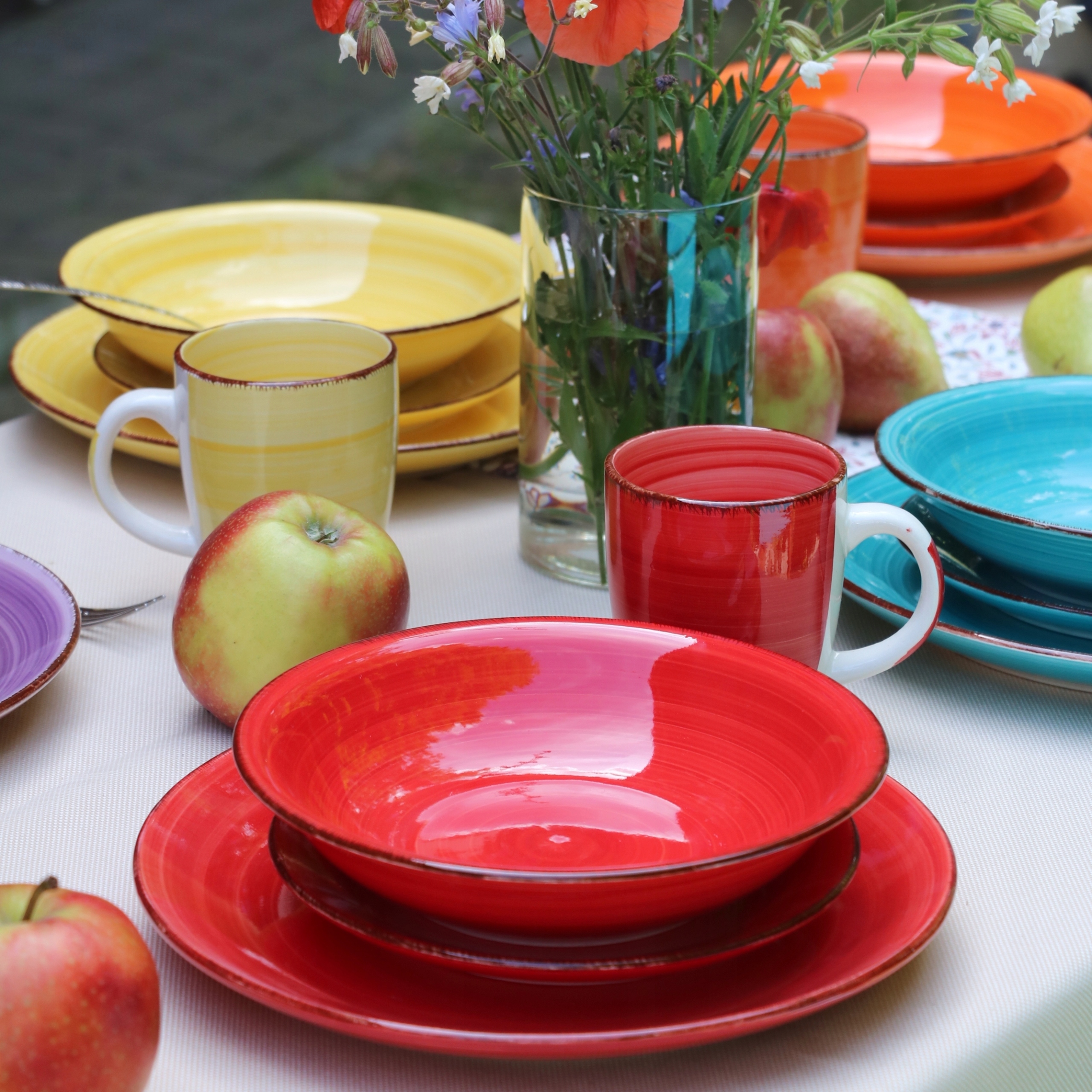 Предлагаем красивый набор керамических суповых тарелок6 оттенков красного/оранжевого/желтого/зеленого/синего/фиолетового.