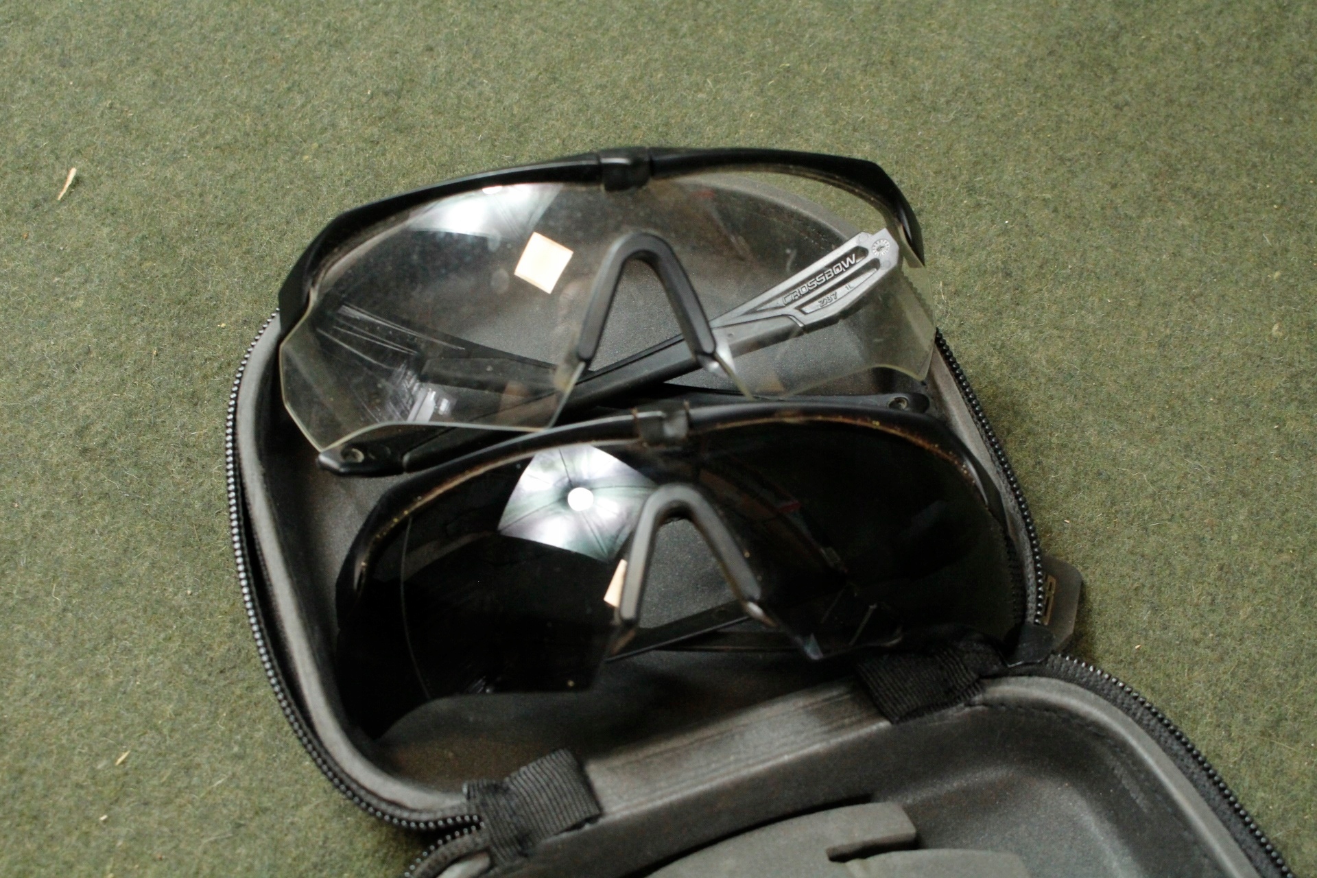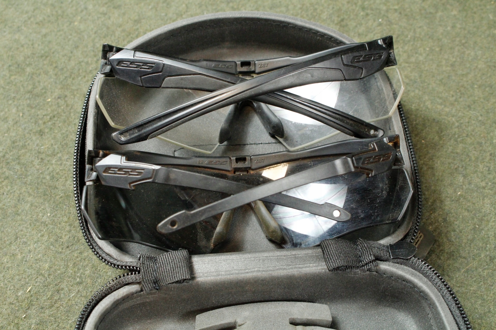 ballistic glasses ESS Crossbow Suppressor 2x баллистические из серии поперечной серии американской компании Ess. Они оснащены царапин -резистентными, легкими обменными баллистическими видениями с защитой от испарения, которые не искажают изображение по всему поле зрения.