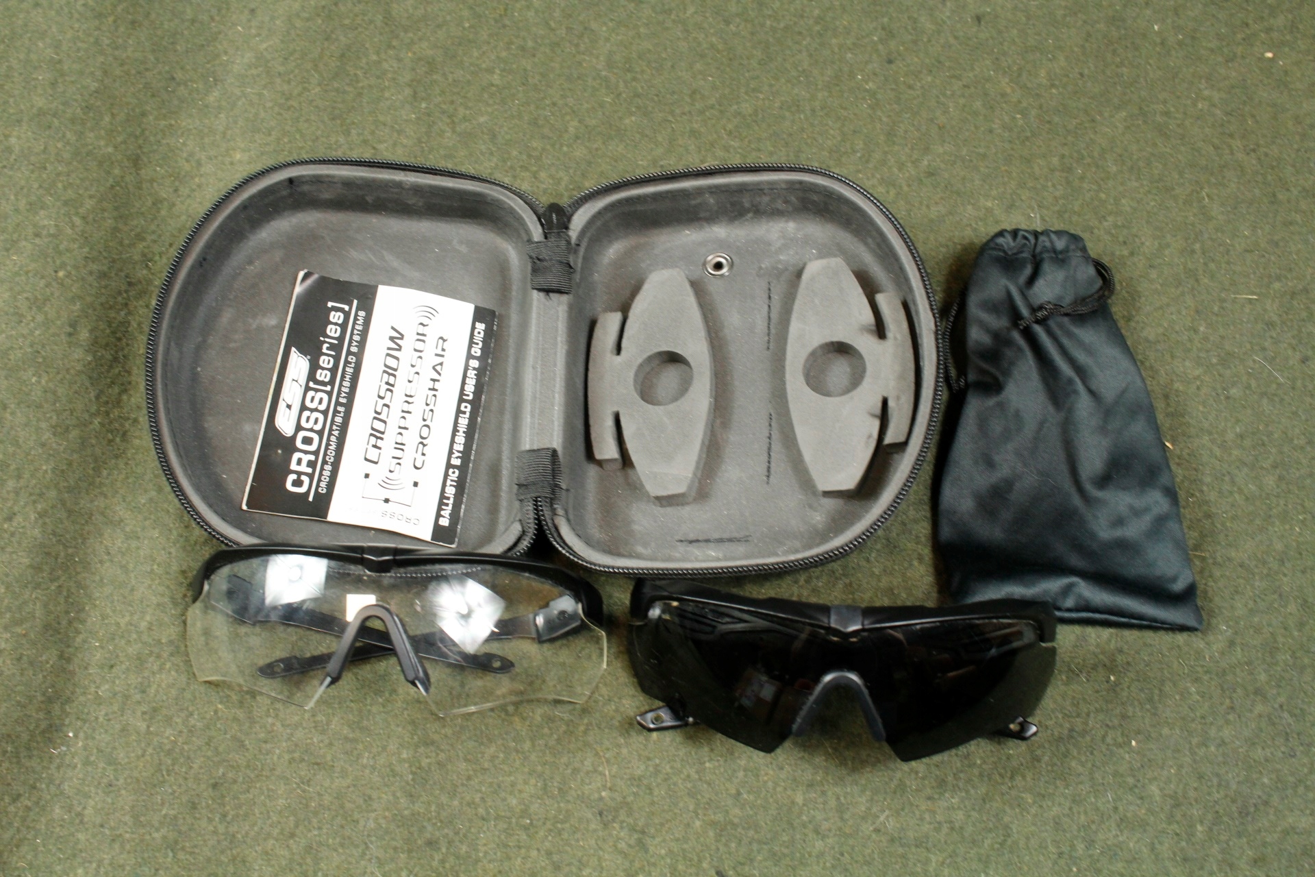 Крестобалет-флагманская модель флагманских баллистических очков из серии кросс-серии серии серии кросс-сериалов американской компании Ess. Они оснащены устойчивыми к царапинам, легким баллистическим видениям с защитой от испарения, которые не искажают изображение по всему поле зрения.