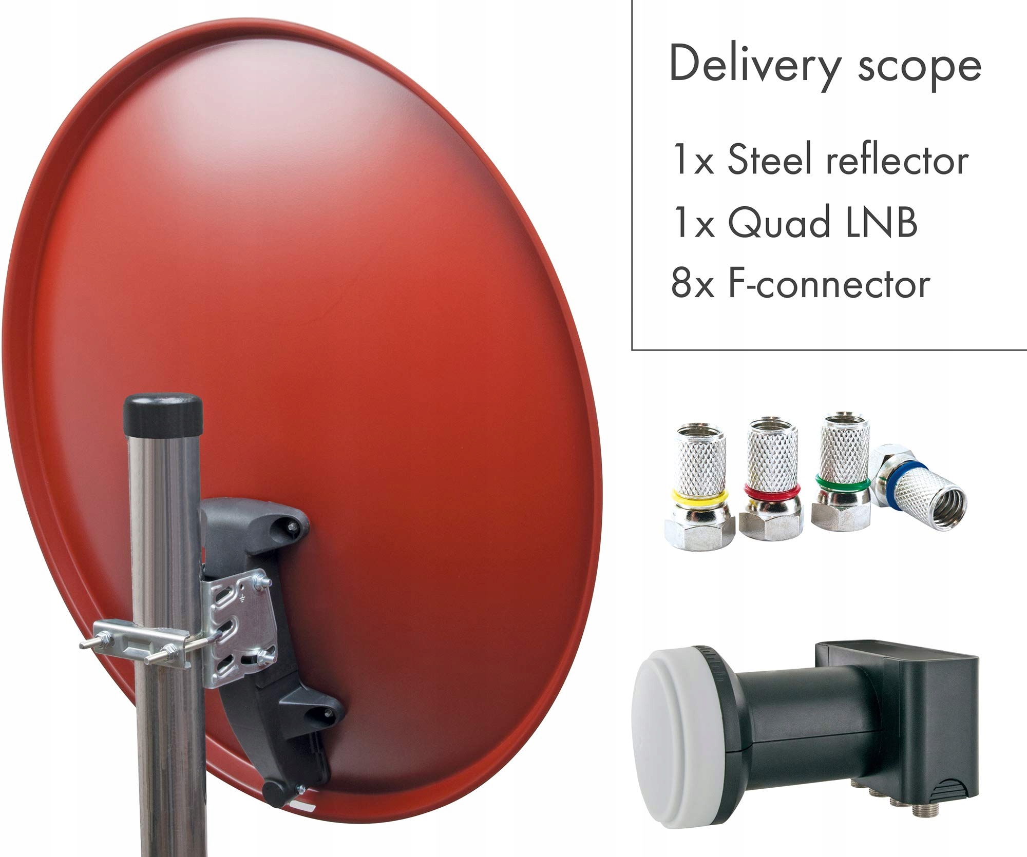 SCHWAIGER -494- Спутниковая система | Спутниковая антенна | 55 см | Стальная спутниковая тарелка | Двойной преобразователь | цифровой | 2 участника | 8 разъемов F | 7 мм | 55 х 62 см | кирпично-красный