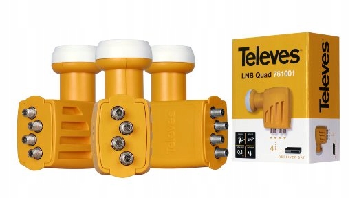 Quad — четыре одиночных преобразователя в одном корпусе. Работает независимо с четырьмя спутниковыми ресиверами или двумя с рекордером. Конвертер Quad Televes позволяет одновременно записывать и смотреть разные каналы разных диапазонов и поляризаций (V и H). Конвертер работает с декодерами всех цифровых платформ, доступных на польском рынке, включая Polsat Cyfrowy, NC+, предоплаченное телевидение.