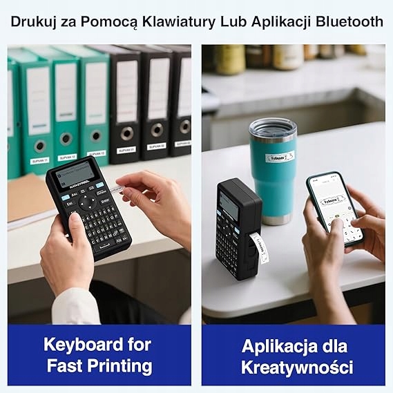 ✅ Двусторонняя печать — непосредственно с QWERTY-клавиатуры или через приложение Bluetooth (более 40 шрифтов, 50 и 450 рамок) значки).