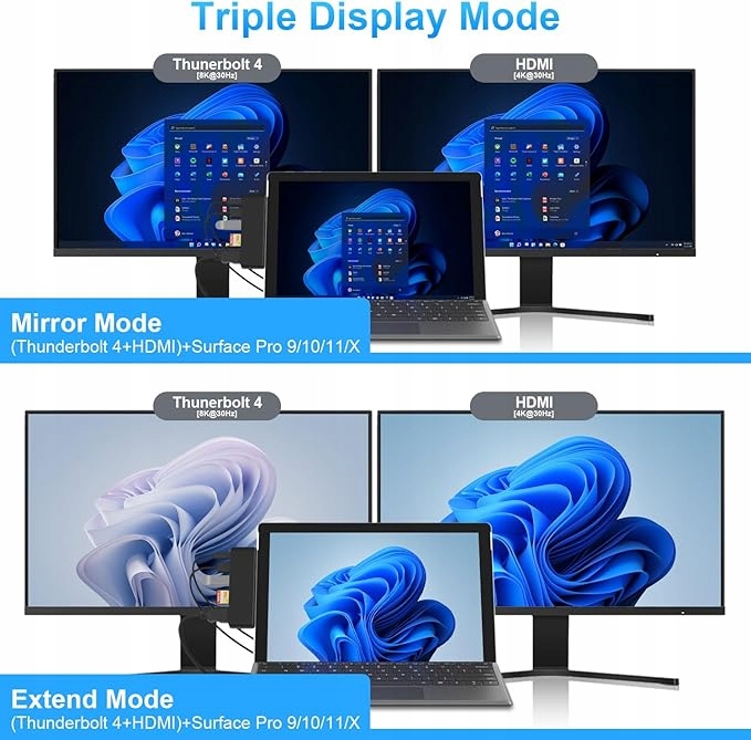 Этот концентратор Surface Pro 9 допускает расширение с помощью 2 мониторов, предоставляя больше места для работы и возможности выполнять различные проекты на различных мониторах. Поддерживает режим расширения или зеркала, разрешение HDMI до 4K при 30 Гц, USB-C Thunerbolt от 4 до 8 K при 30 Гц; Идеальный гаджет для редакторов, фотографов, программистов.