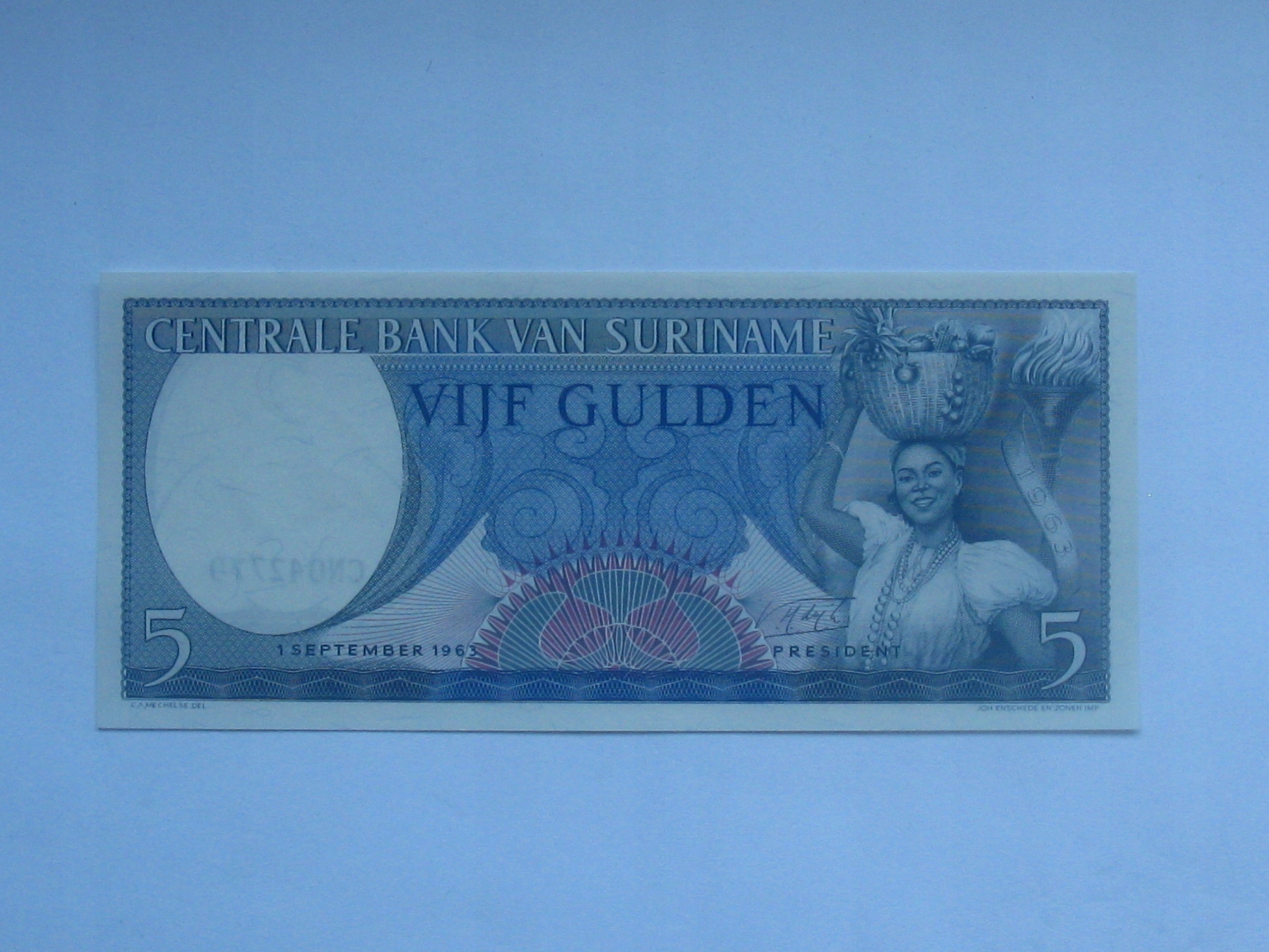Surinam Banknote 5 Guldenów P-120 UNC 1963