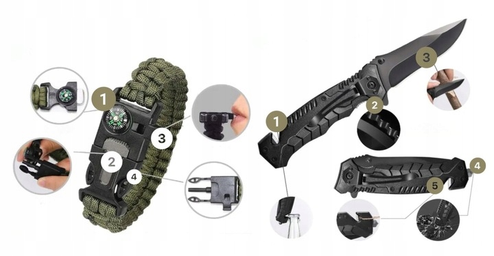 ❎ Браслет из паракорда 4 в 1 - паракорд длиной около 350 см с компасом, свистком и зажигалкой