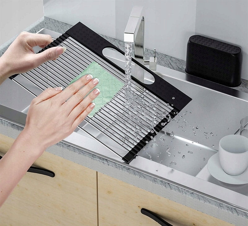 • Универсальный внешний вид : простая и современная форма дренада смешивается с декором любой кухни.