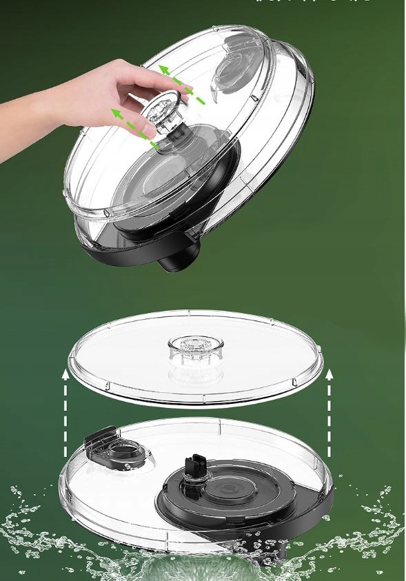 - Простота эксплуатации: Просто поместите продукты в корзину, наденьте крышку, нажмите и поверните удобную рукоятку. Весь процесс происходит без использования электроэнергии, что экономично и экологично.