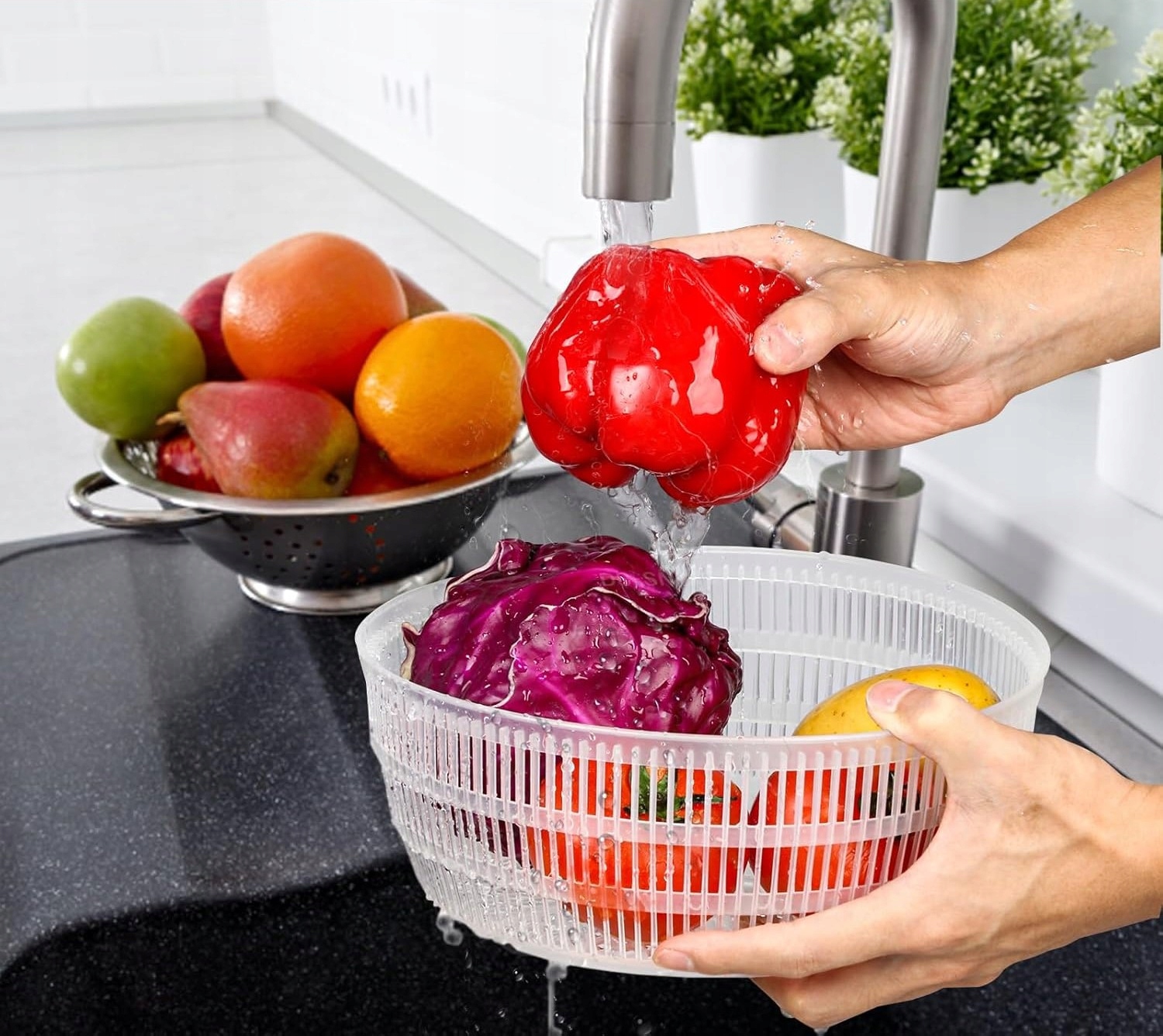 Откройте секрет свежих и хрустящих овощей на вашей кухне! Эта центрифуга – незаменимое многофункциональное устройство, которое упростит приготовление блюд и позволит вам каждый день наслаждаться полезными салатами. Эта элегантная и практичная спиннер сочетает в себе все необходимое: стирку, сушку, даже сервировку и хранение.