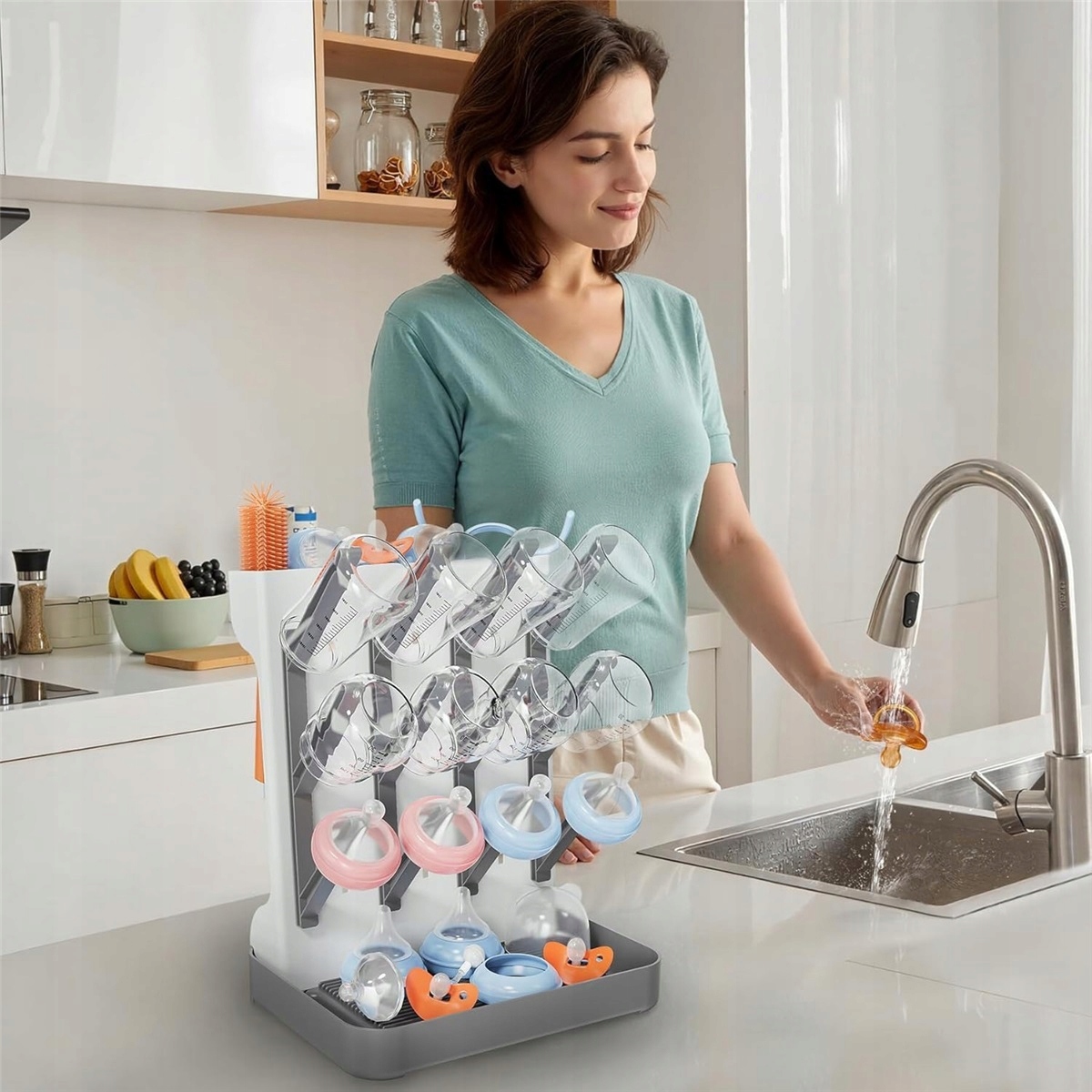 Вы ищете функциональное решение для хранения и сушки бутылочек и аксессуаров вашего малыша? Эта сушилка — ответ на ваши потребности! Благодаря продуманной конструкции помогает поддерживать гигиену и порядок на кухне, столовой или гостиной, идеально подходит для повседневного ухода за ребенком