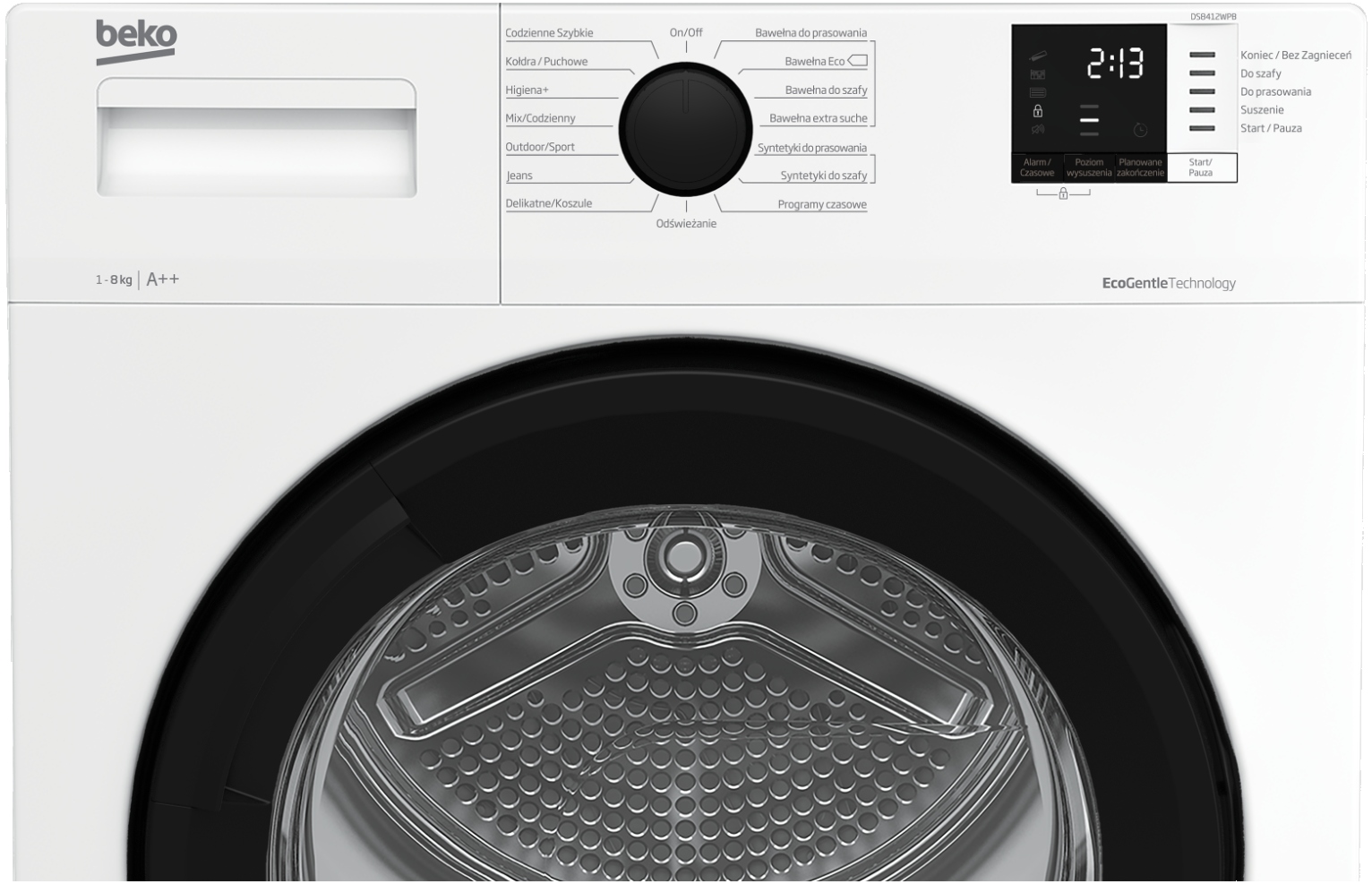 - Вместимость сушильной машины: 8 кг