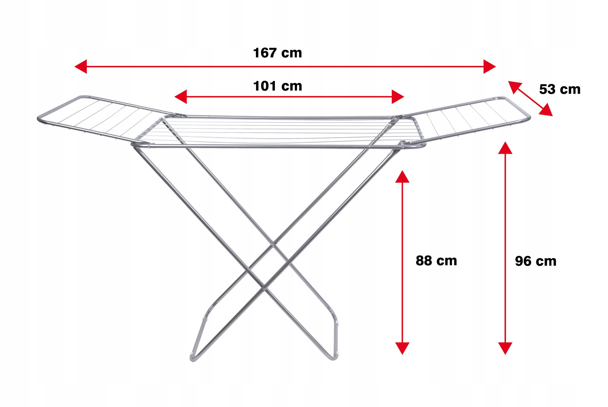 Имеет два складных крыла. , что позволяет сушить больше одежды за раз.