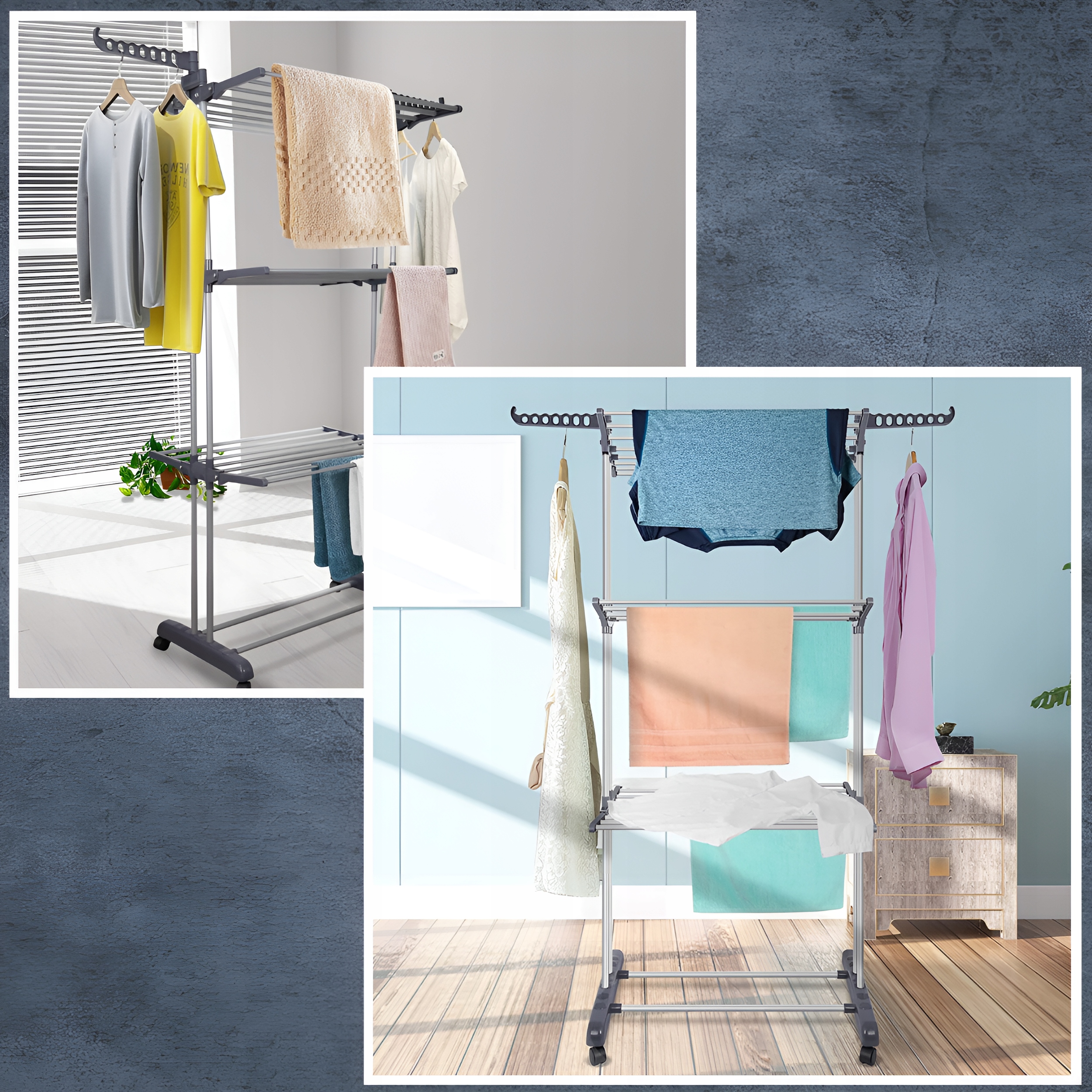 В отличие от классических сушилок, которые часто занимают много места по горизонтали, наша сушилка расширяется по вертикали, что означает, что она занимает меньше ценной площади и в то же время предлагает больше места для сушки. пространство.