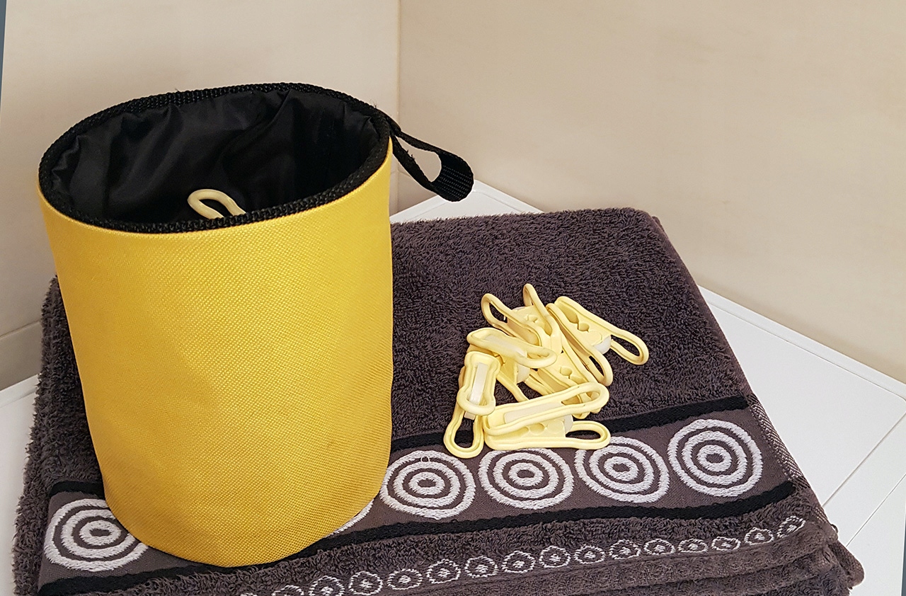 Вмещает 40-50 прищепок. Прикрепляется к сушилке для белья, подвешивается на сушильную веревку.
