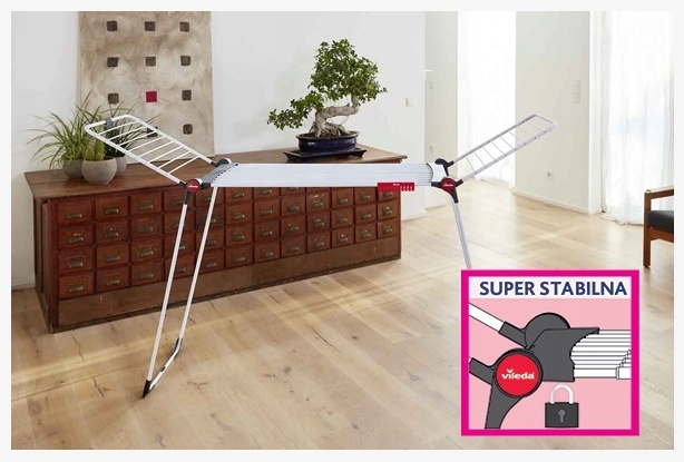 Vileda заботится не только о комфортной сушке, но и о легком глажке. Сушилка Infinity Flex имеет 40% более толстые стропы, благодаря чему белье имеет меньше складок, что сокращает время глажки до минимума.