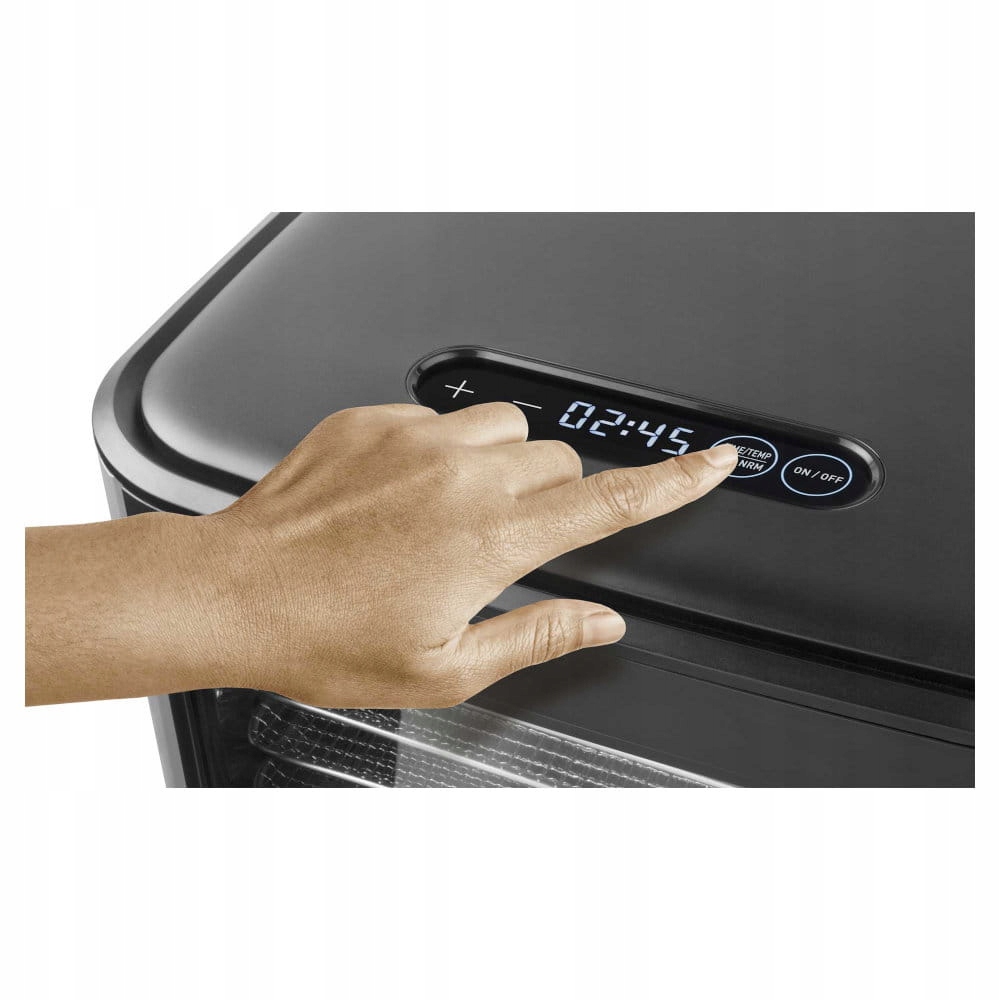 Выбор между солнечной сушкой или классической сушкой горячим воздухом. Управление интуитивно понятное и понятное, благодаря большому сенсорному дисплею. Сохраняйте зелень, грибы, мясо, фрукты и овощи с высоким содержанием полезных для здоровья веществ и дольше сохраняйте их свежий вкус.