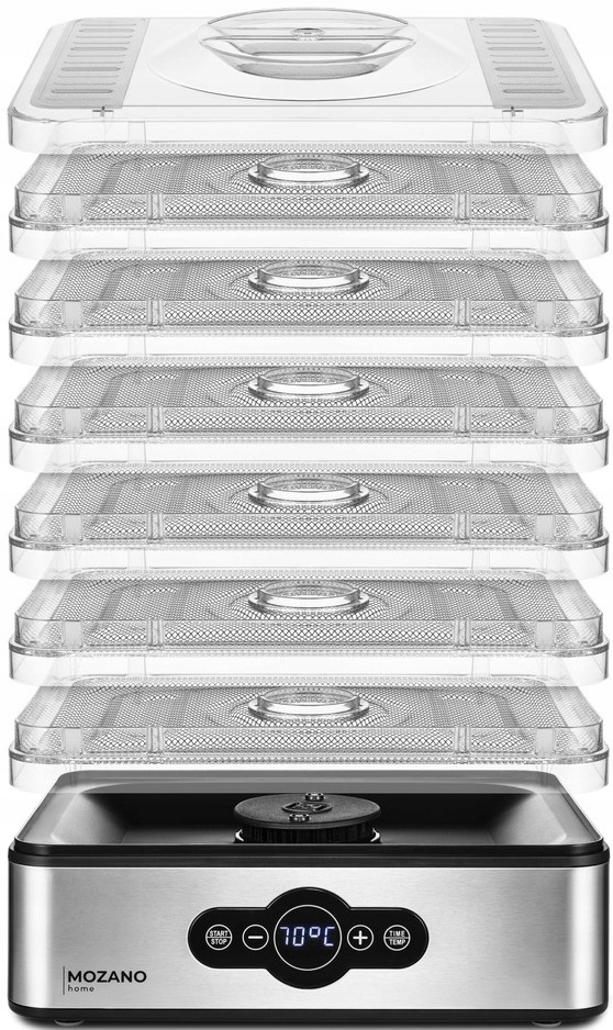 ✅Сушилка для фруктов и овощей Mozano состоит из 6 лотков из нержавеющей стали с защищенными краями. Их особая конструкция с дополнительным входным отверстием обеспечивает свободную циркуляцию нагретого воздуха, сокращает время сушки и предотвращает прилипание.