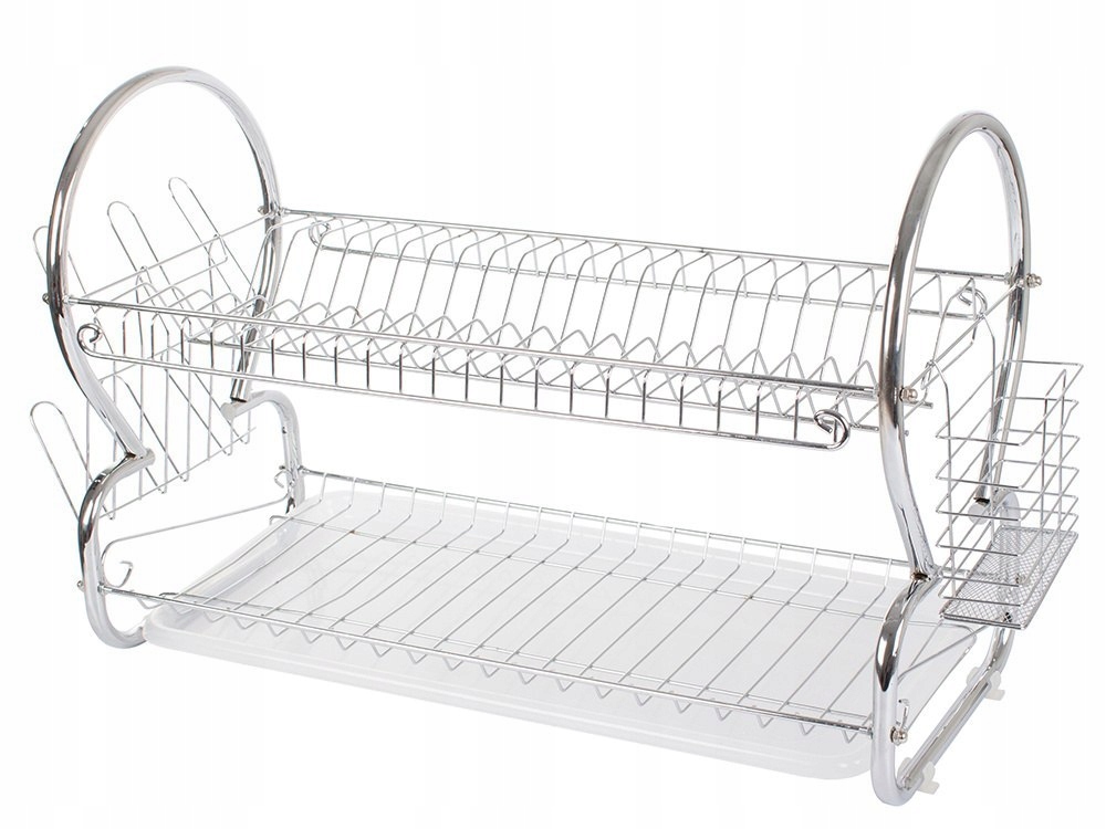 Двухуровневая сушилка для посуды — незаменимая техника на каждой кухне. Он очень практичен и имеет два уровня, на которых можно разместить большое количество тарелок, мисок и стаканов. Кроме того, он имеет две ручки для подвешивания. Один для столовых приборов, другой для стаканов.