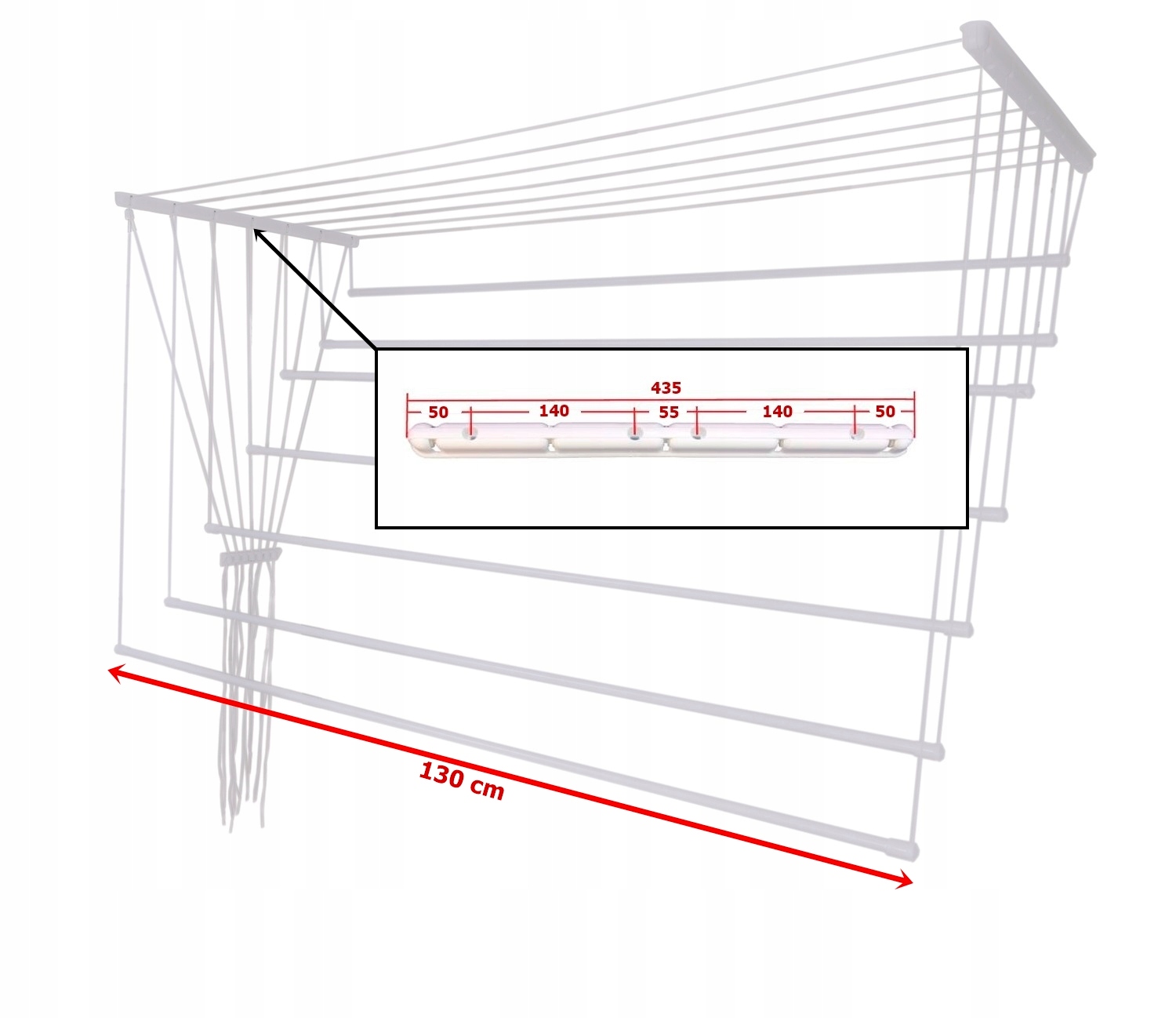 Потолочная сушилка для ванной комнаты для белой премиум -польши 5 стержней 130 см h1>