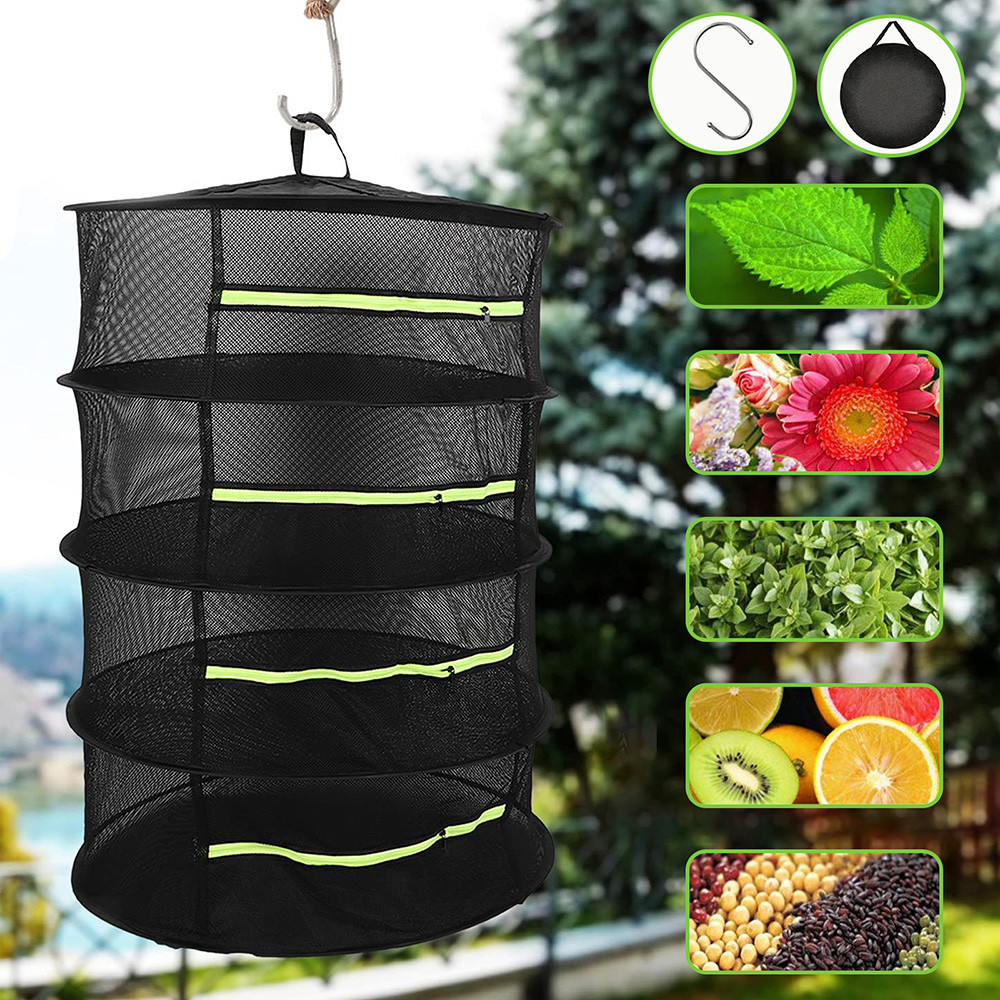 Идеальный дизайн --- Дышащая сетка для сушки позволяет сушить травы очень быстро и легко. Каждый слой имеет независимую молнию, которую можно сортировать и сушить, чтобы избежать смешивания, что эффективно предотвращает появление птиц. Вертикальный дизайн очень эффективно использует пространство.