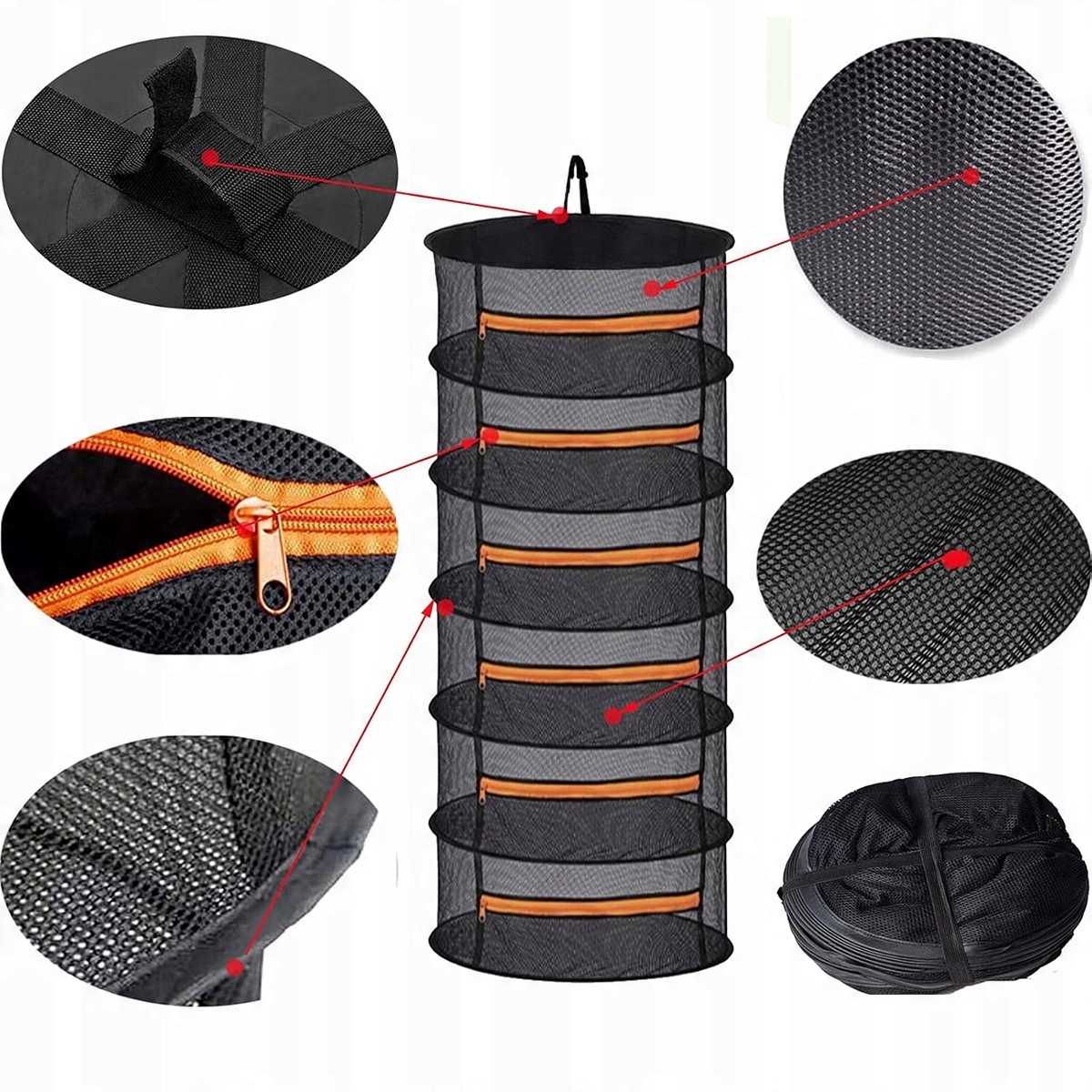 6-слойная сетка для подвешивания трав, черная сетка для сушки с оранжевыми молниями