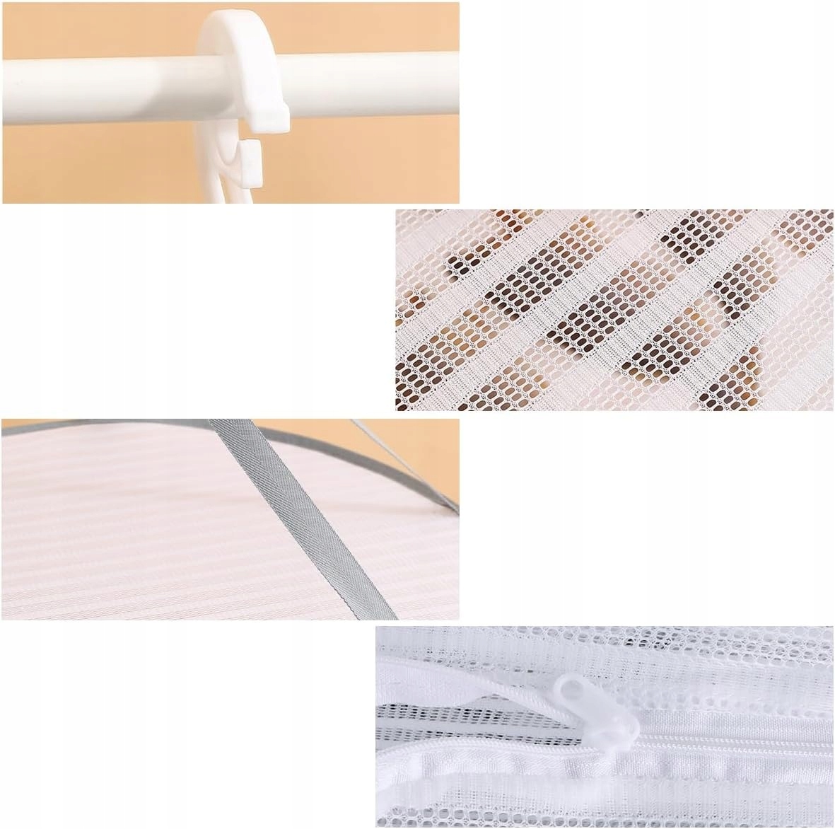Сетчатая сушилка изготовлена из дышащего нейлона и сетчатой ткани для эффективной циркуляции воздуха и вентиляции. В каждый уровень встроено кольцо из нержавеющей стали, которое обеспечивает стабильную фиксацию и не деформируется даже при длительном использовании.