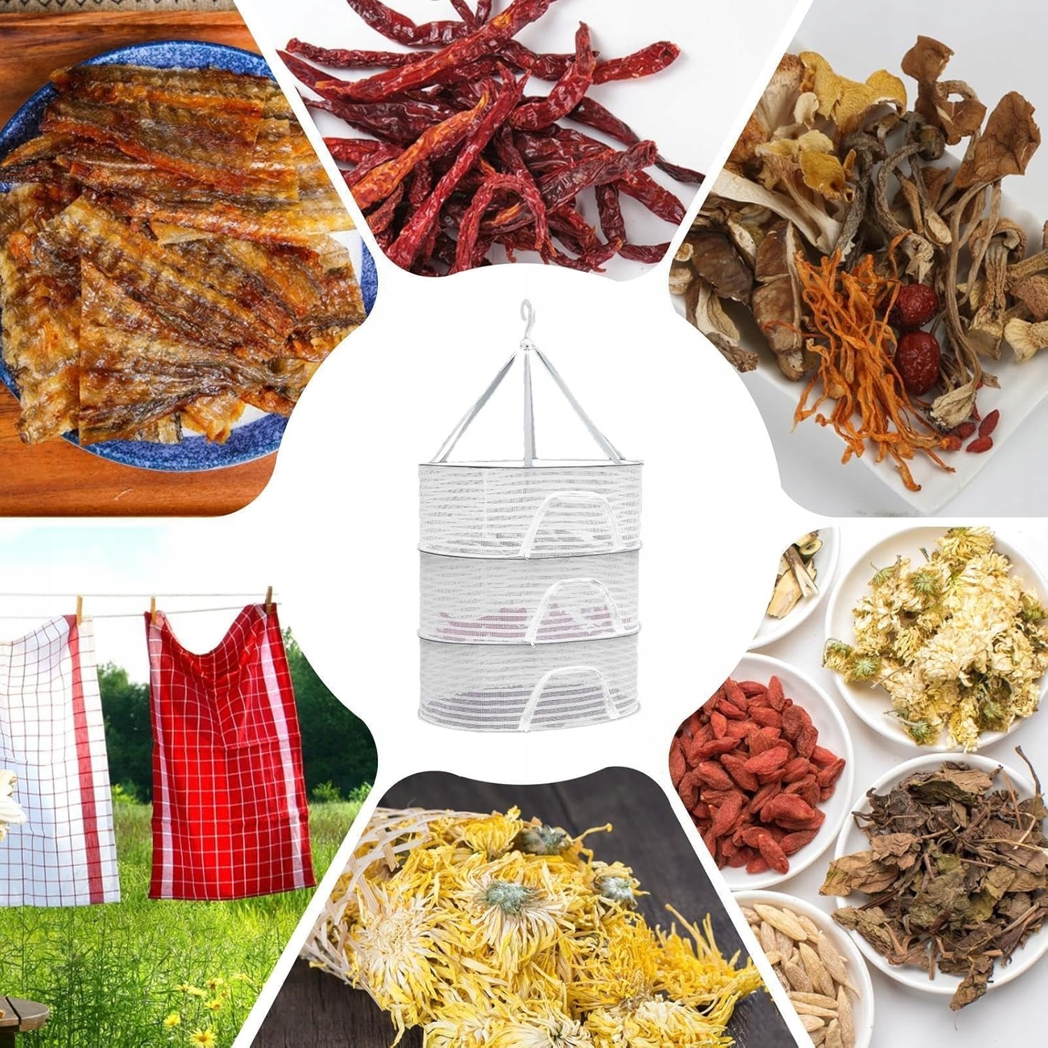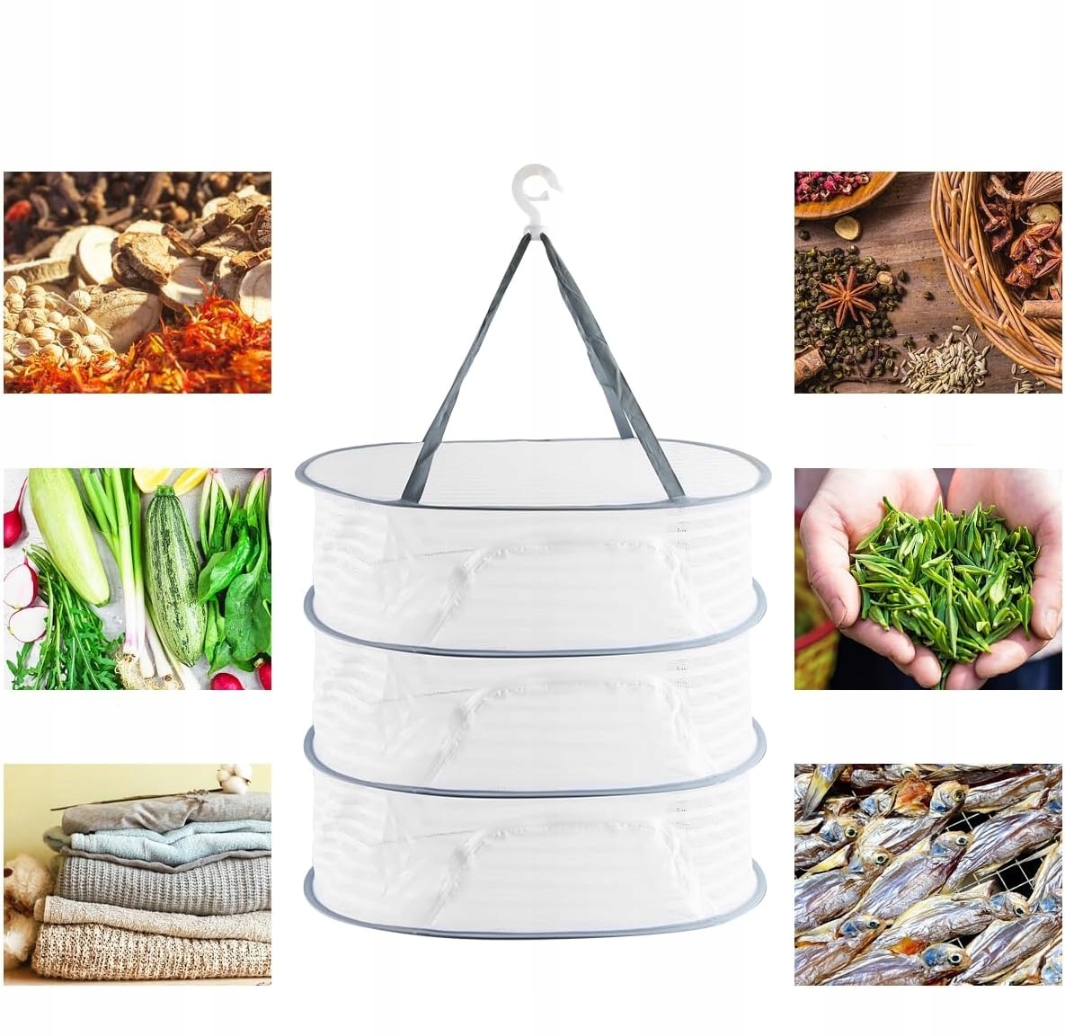 СУШИЛЬНАЯ СЕТКА ДЛЯ СУШКИ РЫБЫ, ГРИБОВ, ФРУКТОВ, ТРАВ ДЛЯ ПОДВЕШИВАНИЯ, 3 СЛОЯ