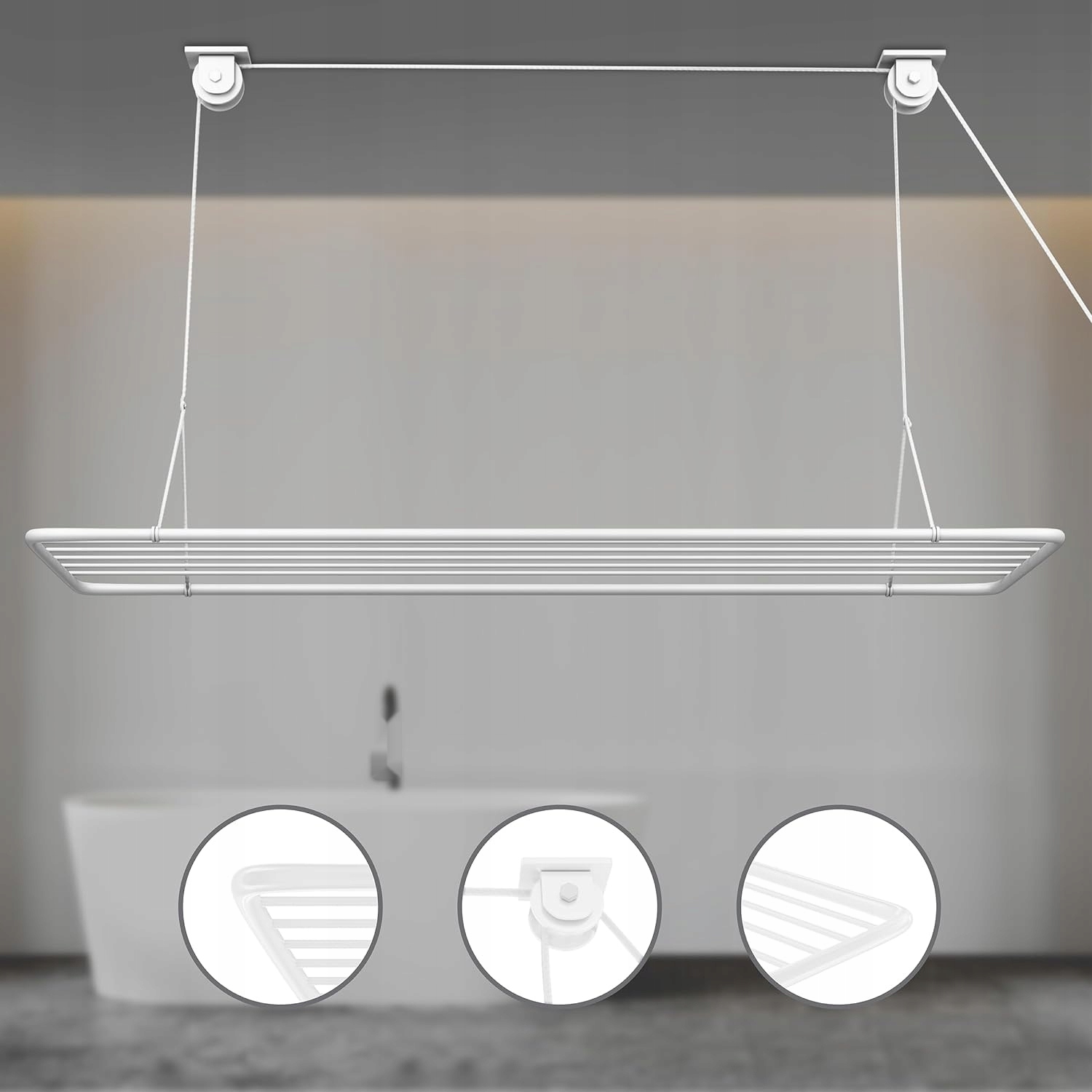 Потолочная сушка 140 x 50 см, 11,2 М сушильная поверхность, металл, белый