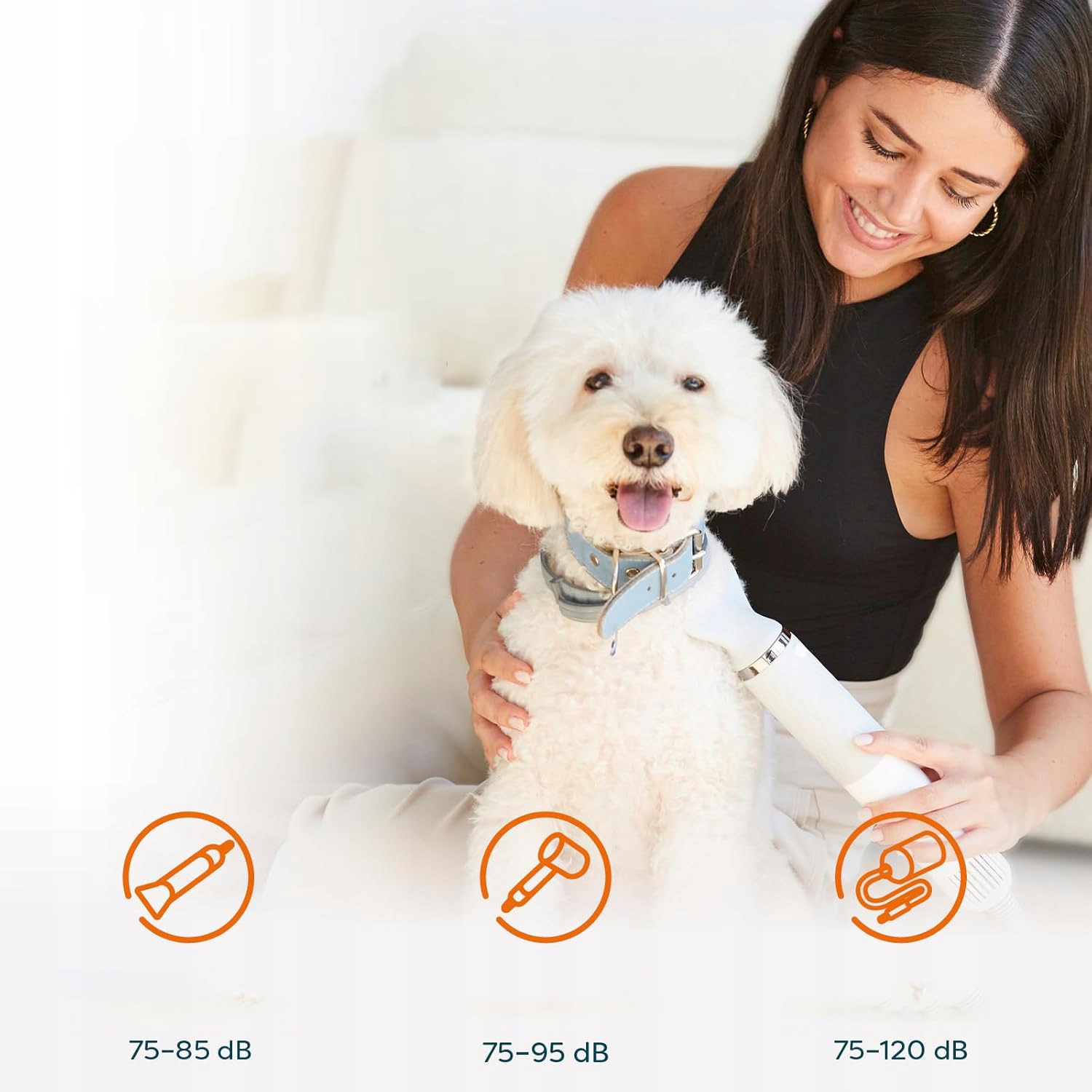 - ✔ Шум составляет 75-85 дБ, что типично для этого типа фен, поэтому ваш питомец не будет бояться этого.
