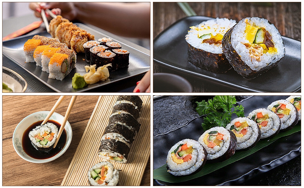 Безопасный материал: суши -валичный материал изготовлен из безопасной и здоровой пищевой пластики, включая суши, суши и штехсел. Все элементы стерилизованы и дезинфицированы. После приготовления вкусных суши, удалите суши и просто промойте ее водой. Коврик для суши и палочек сделан из бамбука и дезинфицировался и стерилизован, так что вы можете использовать их без колебаний.