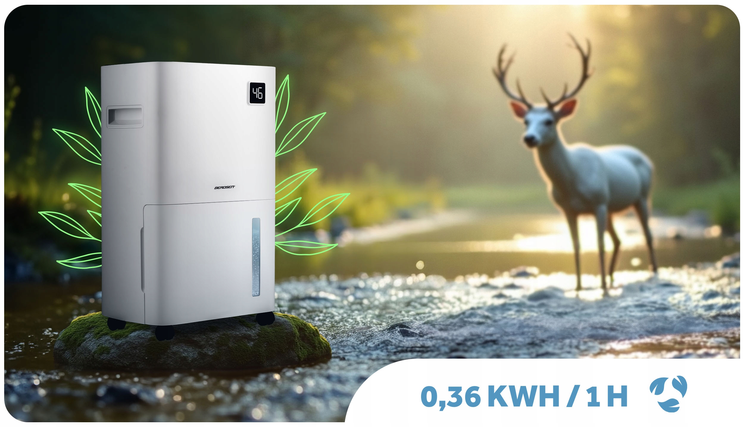 В нашем осушителе мы использовали хладагент R290, который не разрушает озоновый слой (низкий потенциал ОРП) и имеет очень низкий потенциал глобального потепления (ПГП). По показателям холодоэффективности он не уступает старым хладагентам из группы HCF, напр. R134A, R404A, но он гораздо более экологичен. Наше устройство соответствует всем стандартам Польши и ЕС, а также директивам ЕС по низкому напряжению и электромагнитной совместимости.