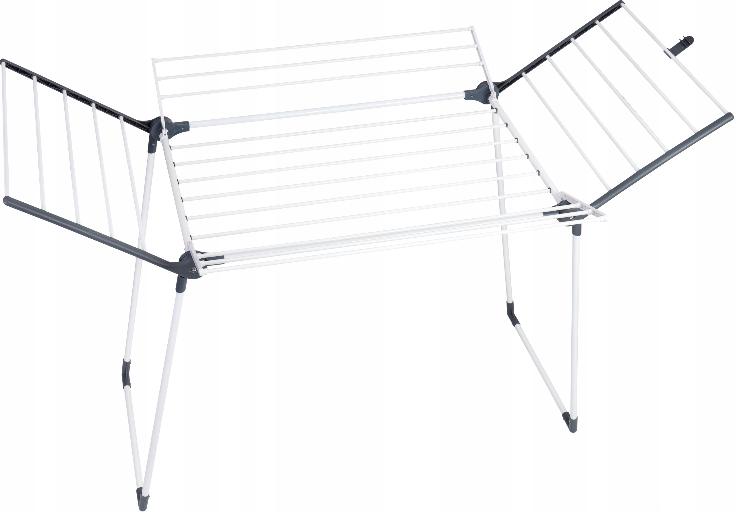Сушилка горизонтальная, стоячая, складная < б>крылья, позволяющие сушить больше одежды. Благодаря толстой проволоке предотвращает образование складок на одежде и сокращает процесс глажки.