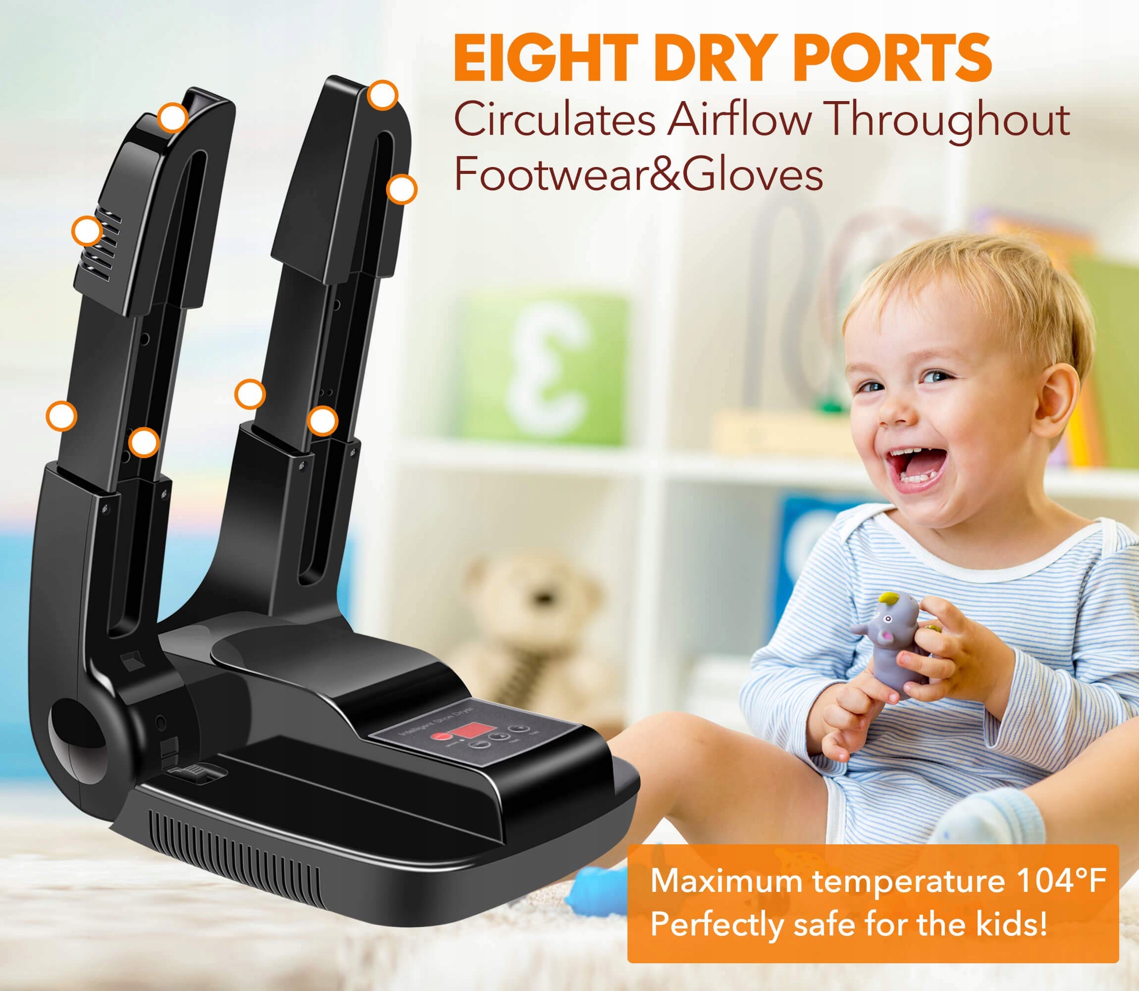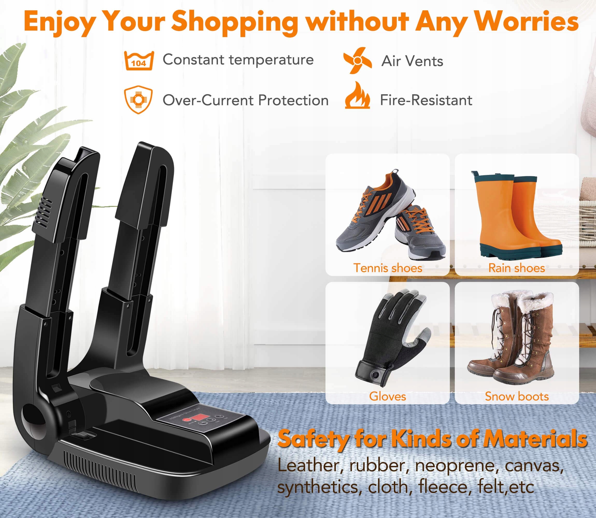 *** Быстрая сушка с интеллектуальным таймером *** Установите разное время работы для разных типов обуви. Легко снизить энергопотребление. Благодаря постоянной температуре 104–142 (F) [40–60 C] эти сушилки для обуви быстро высушивают обувь с помощью вентилятора.