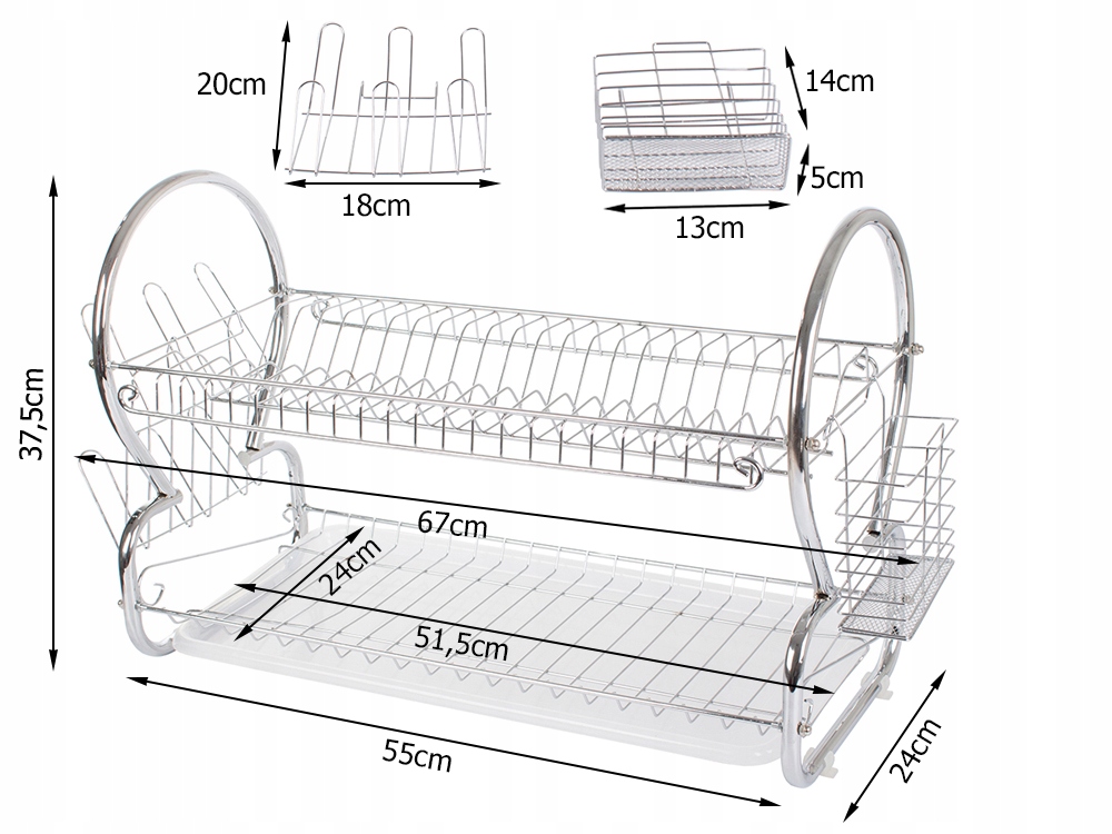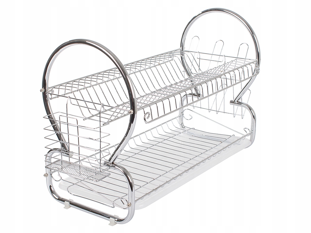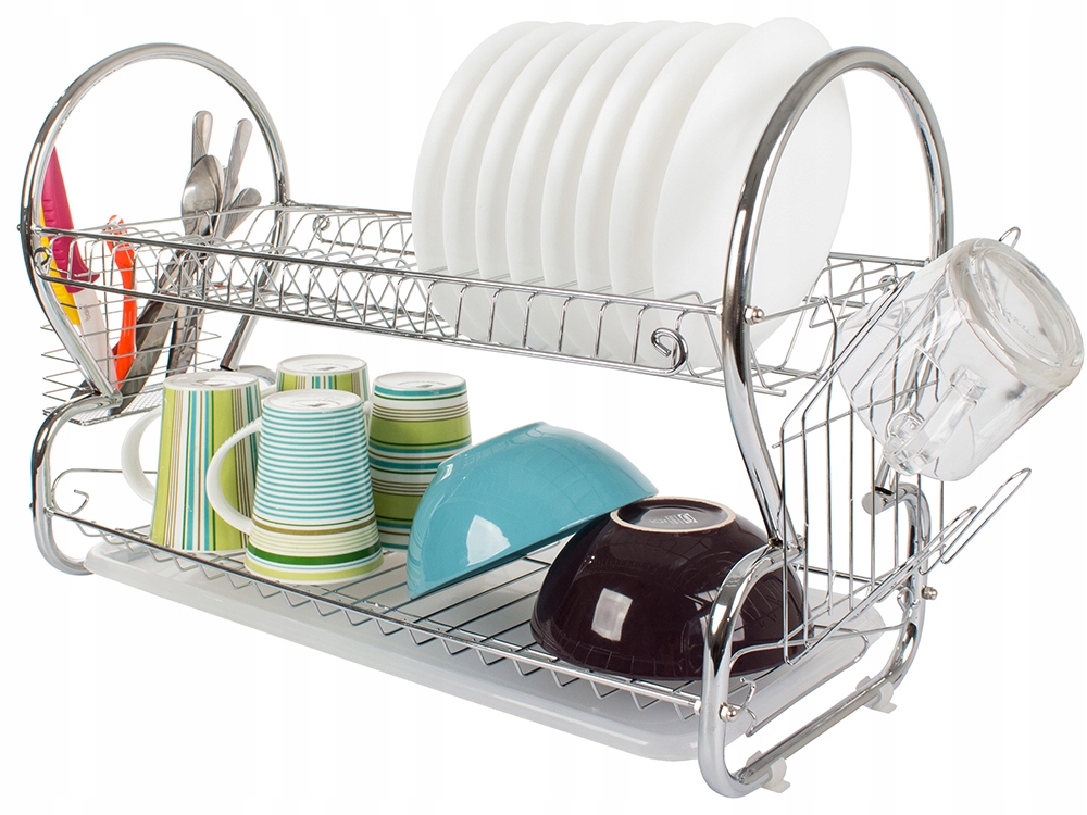 Двухуровневая сушилка для посуды — незаменимая техника на каждой кухне. Он очень практичен и имеет два уровня, на которых можно разместить большое количество тарелок, мисок и стаканов. Кроме того, он имеет две ручки для подвешивания. Один для столовых приборов, другой для стаканов.