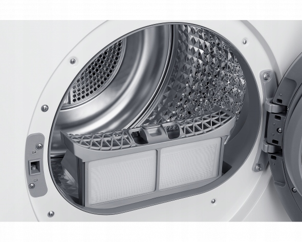Двусторонняя дверца: сделайте вашу одежду легко доступной, где бы вы ни разместили сушильную машину Samsung в доме. Для двусторонних дверей выберите, какая сторона лучше всего подходит для вас.