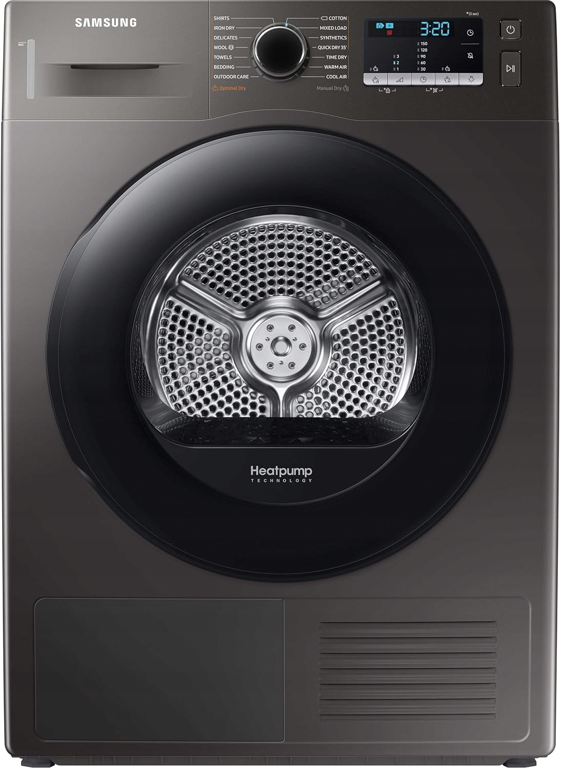 Сушилка Samsung DV90TA040AX поддерживает функцию OptimalDry, а это значит, что благодаря датчикам влажности и температуры она способна автоматизировать рабочие циклы для достижения необходимого уровня сушки. Из 14 доступных программ в 10 режимах дополнительные настройки (время работы или уровень нагрева) не требуются. Таким образом можно сушить, среди прочего: рубашки, полотенца, верхняя одежда и деликатные ткани. Дополнительно вы можете использовать функцию «Антисминание», отложить старт, обновить или включить быструю сушку. Бонусами модели являются подсветка барабана, простое и понятное управление с защитой от детей, а также входящий в комплект набор для слива конденсата в канализацию. Уровень шума при работе может достигать 65 дБ.